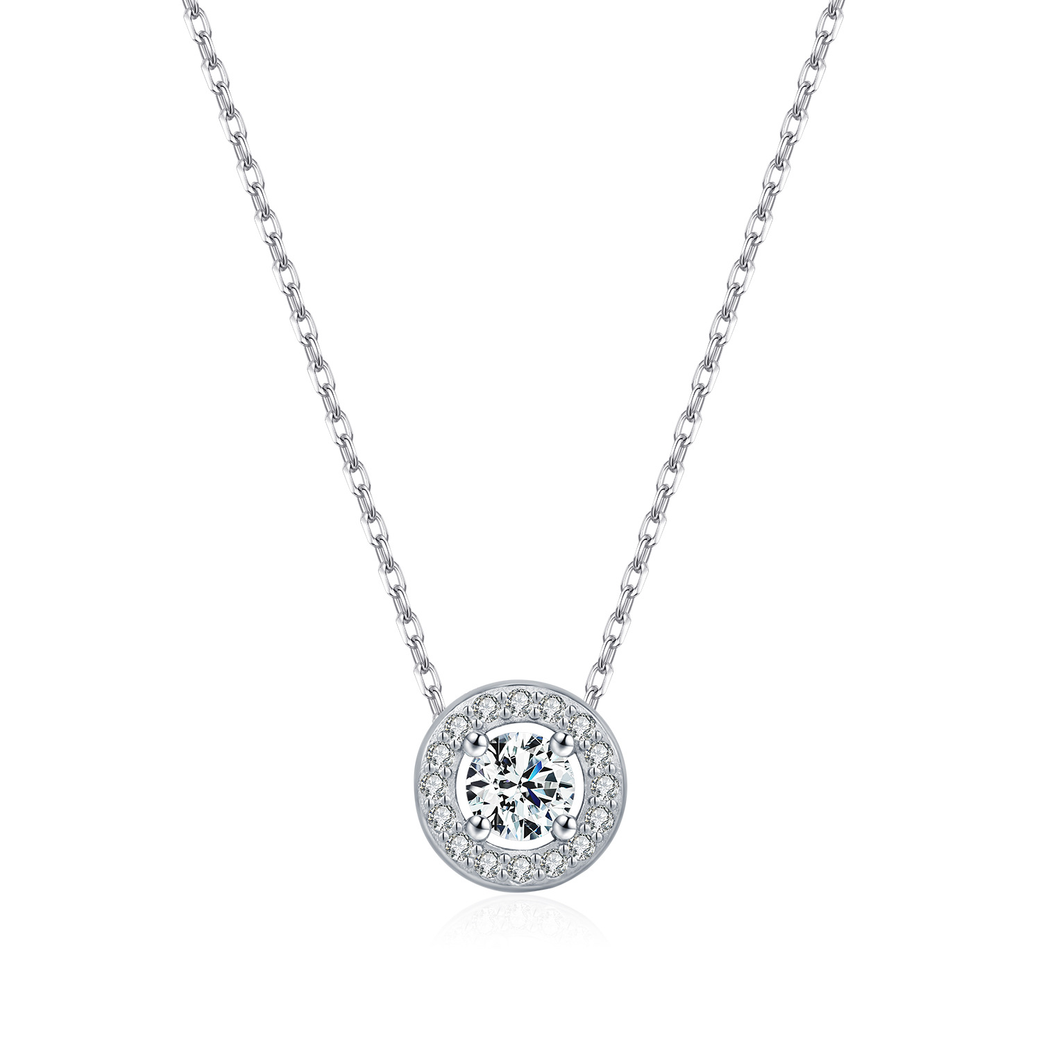 Secure a perennial best-seller for your catalog with our 925 Sterling Silver Round Halo Pave Moissanite Necklace. The Round Halo silhouette is one of the most commercially successful designs in the jewelry industry, known for maximizing brilliance. This SKU uses high-quality Moissanite surrounded by a "Full Pave" border to achieve a high-value, diamond-like aesthetic. Crafted from solid S925 sterling silver, this clavicle necklace is a staple inventory item with broad appeal for bridal, gift, and daily wear markets, offering excellent profit margins.