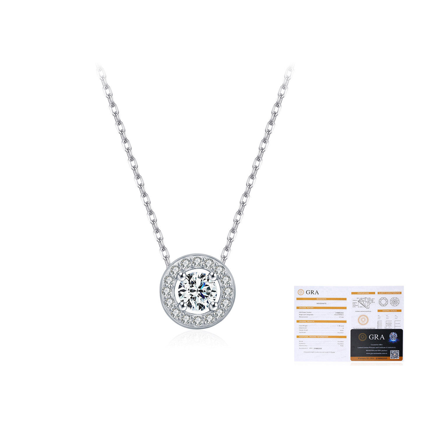 925 Sterling Silver Round Halo Pave Moissanite Necklace 110300030