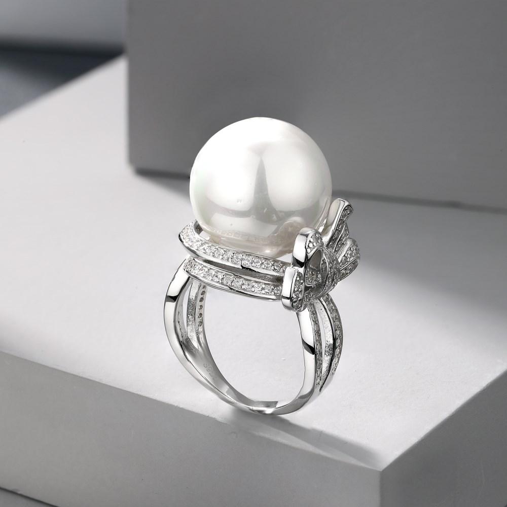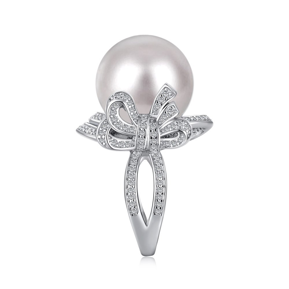 Product: Wholesale 925 Sterling Silver 16mm Fresh Water Pearl Bow Wedding Party Ring 70200175.