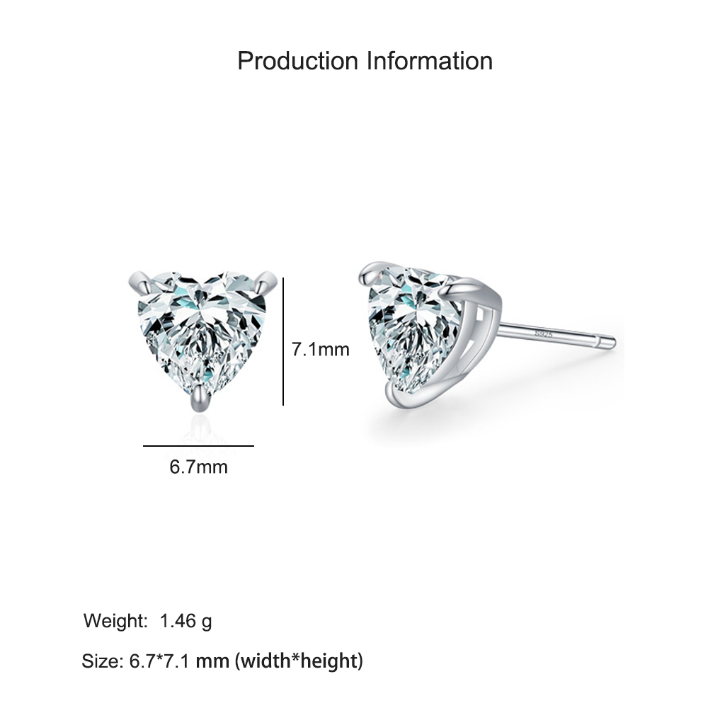 Timeless and full of charm, these 925 sterling silver heart-shaped stud earrings feature sparkling cubic zirconia stones that radiate brilliance from every angle. The delicate heart cut captures light beautifully, adding a romantic touch to any outfit. Crafted from premium 925 sterling silver and finished with a mirror polish, these earrings are hypoallergenic, comfortable, and durable — perfect for daily wear or as a heartfelt gift for someone special.