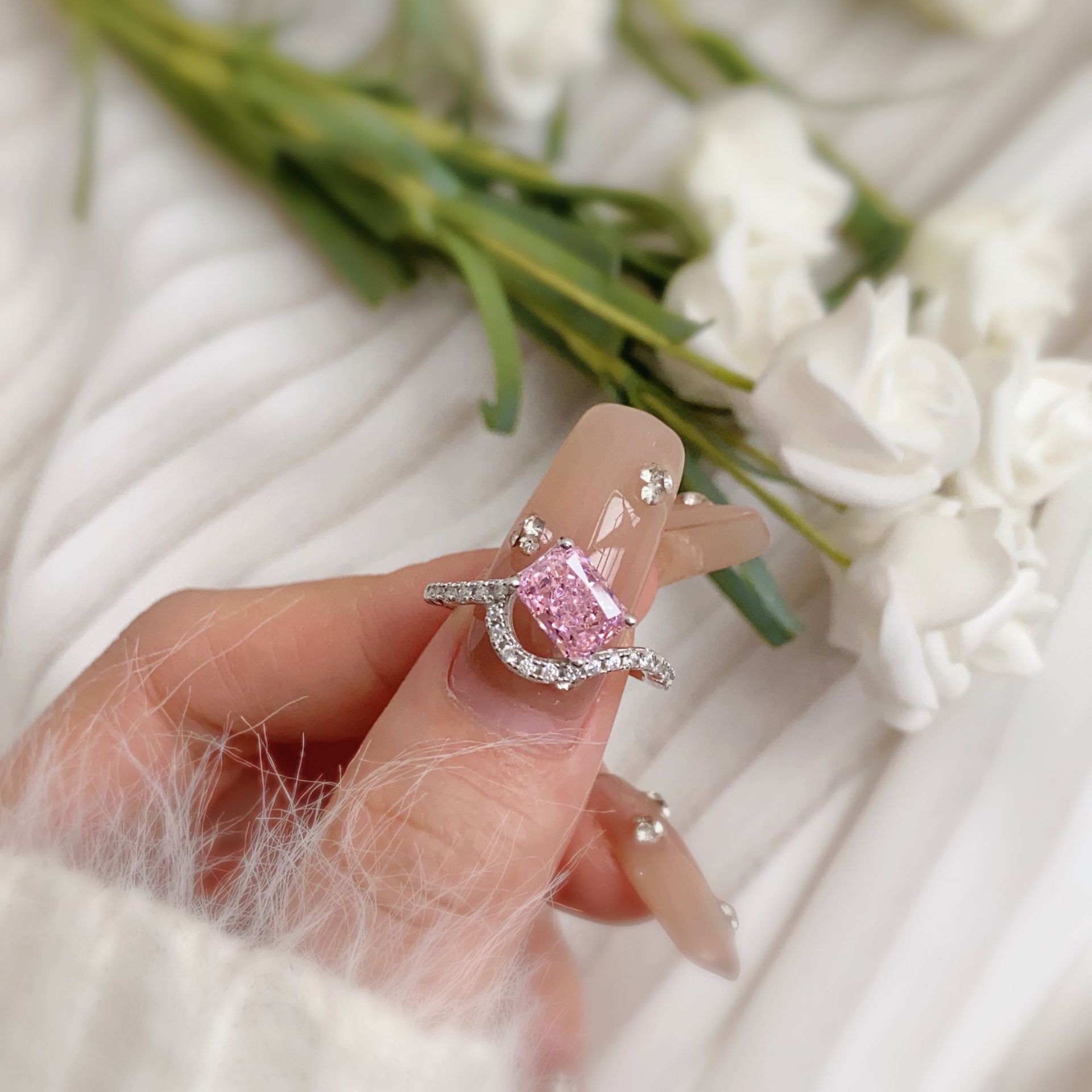 Main Stone: 8A Cubic Zirconia, High Carbon Diamond Stone 6*8mm.