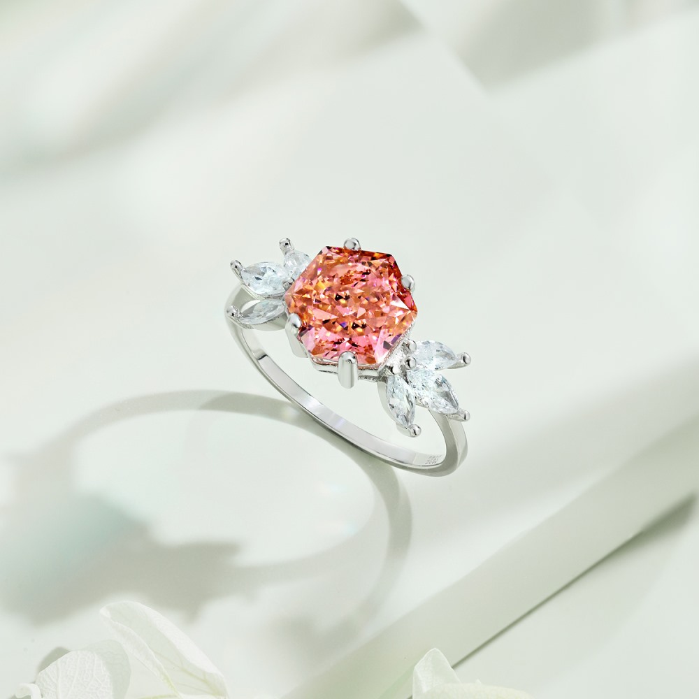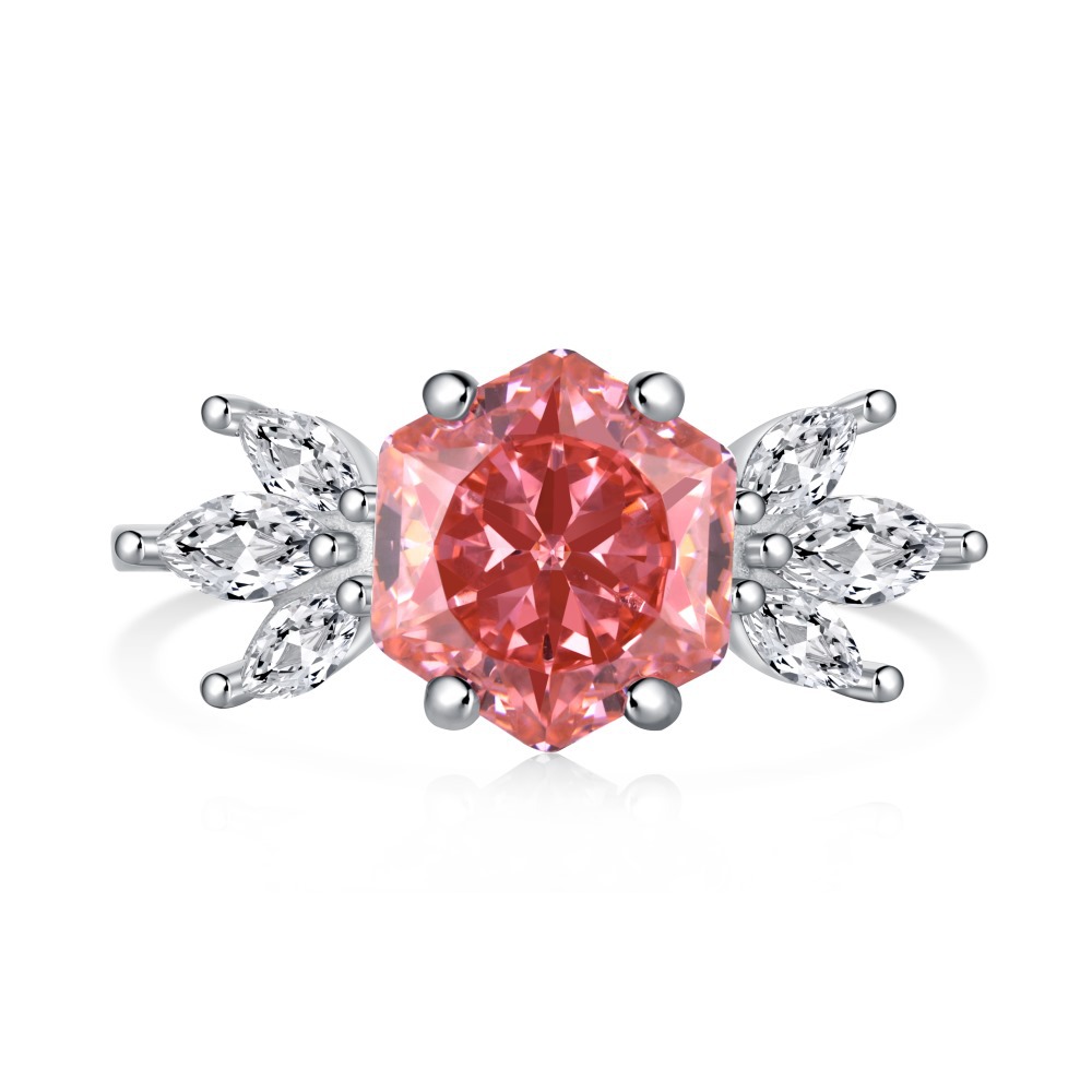 8A Crushed Ice Cut Hexagon Zirconia Solitaire Ring 70200087