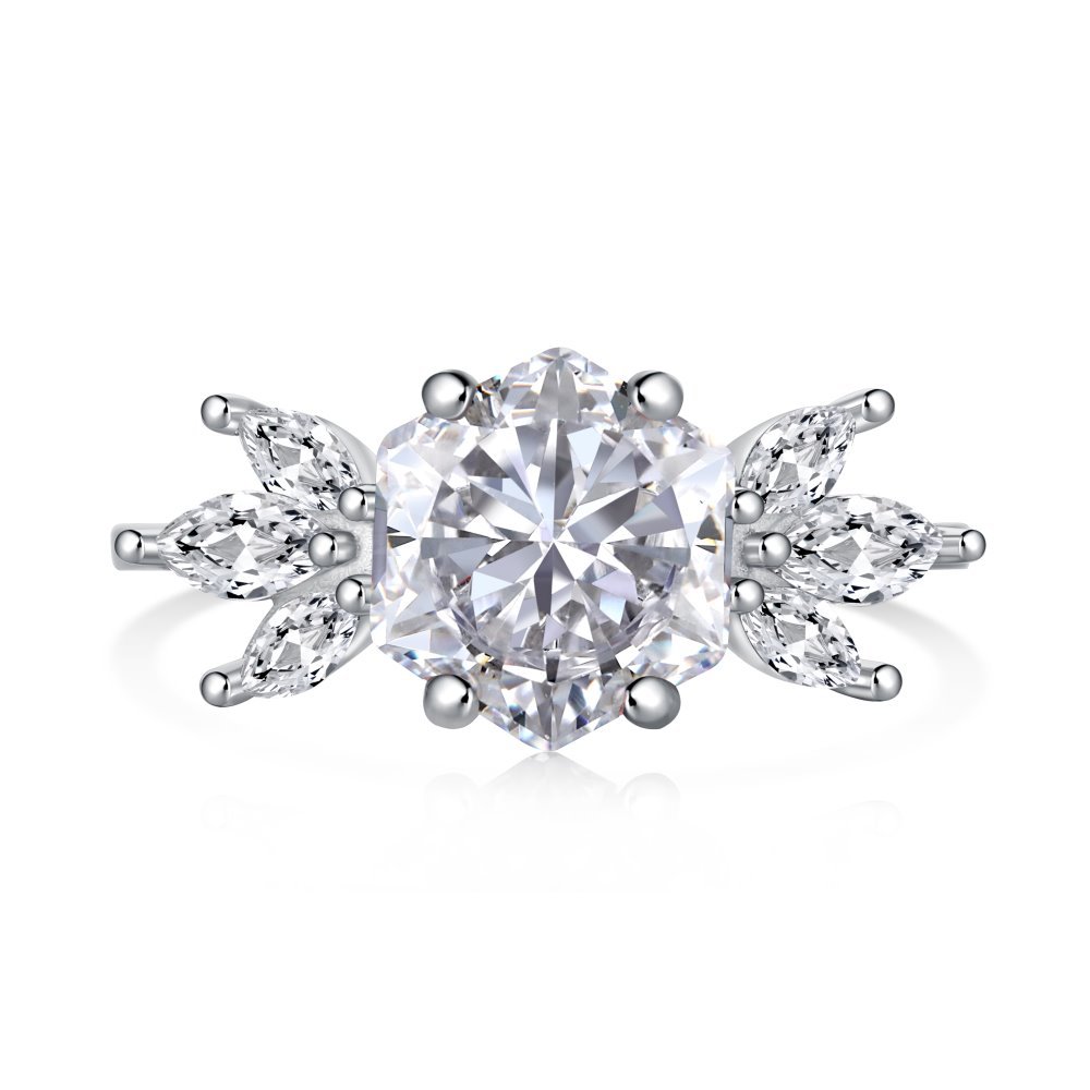 Product: Wholesale 925 Sterling Silver 8A Crushed Ice Cut Hexagon Zirconia Solitaire Ring 70200087.