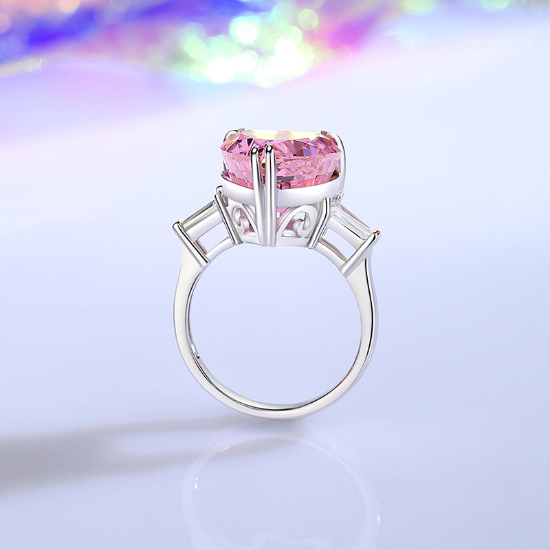 Product: Wholesale 925 Sterling Silver 8A High Carbon Pink Zirconia Heart Ring 70300092.