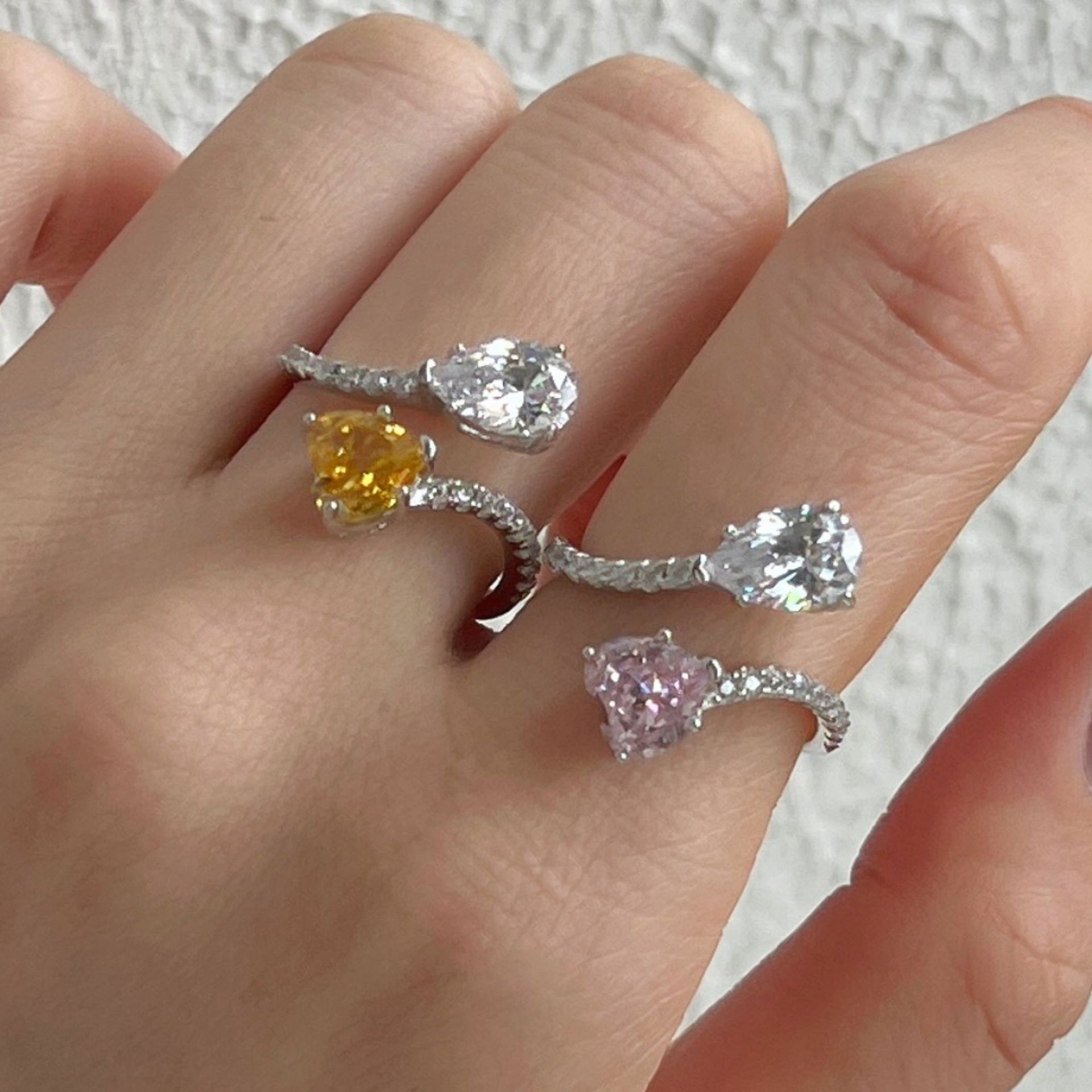 We have a wide collections of wholesale 925 solid sterling silver band rings with high quality cubic zirconia, including 925 sterling silver rings, 925 silver zirconia rings, 925 silver open rings, zirconia open rings, heart zirconia rings. The unique design of 925 sterling silver open rings is flexible for daily wearing.
