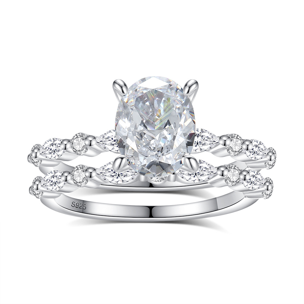 Product: Wholesale 925 Sterling Silver 8A Zirconia Oval Solitaire Stack Ring Set 70200229.