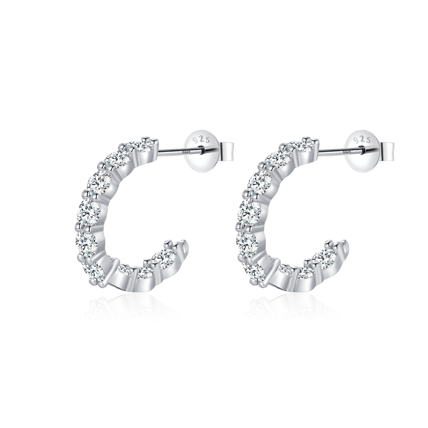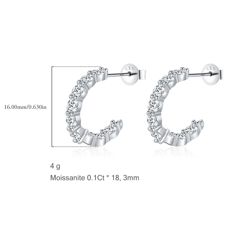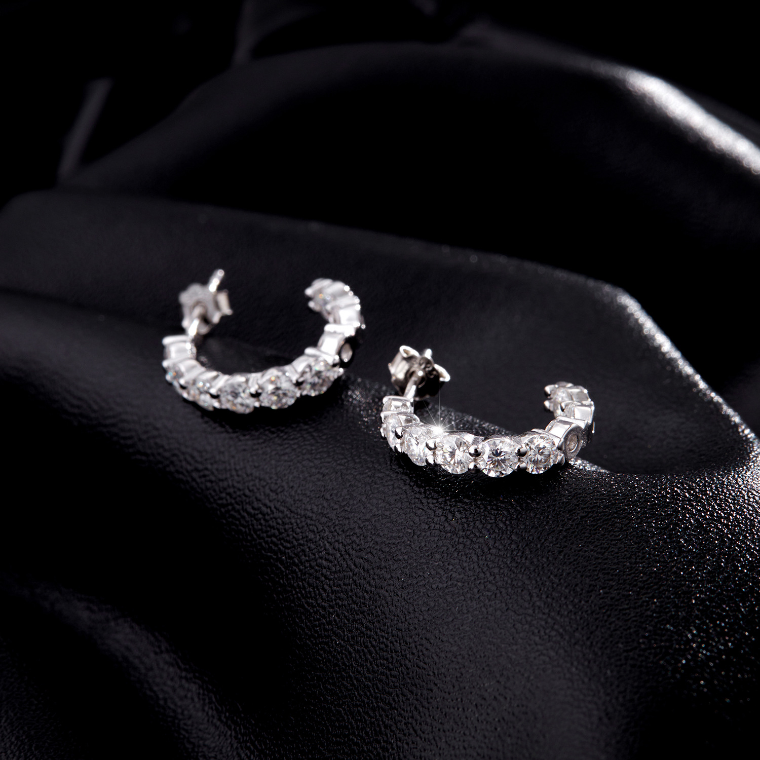 925 C Shape Moissanite Hoop Earring 110100034 - image1925 C Shape Moissanite Hoop Earring 110100034 - image2