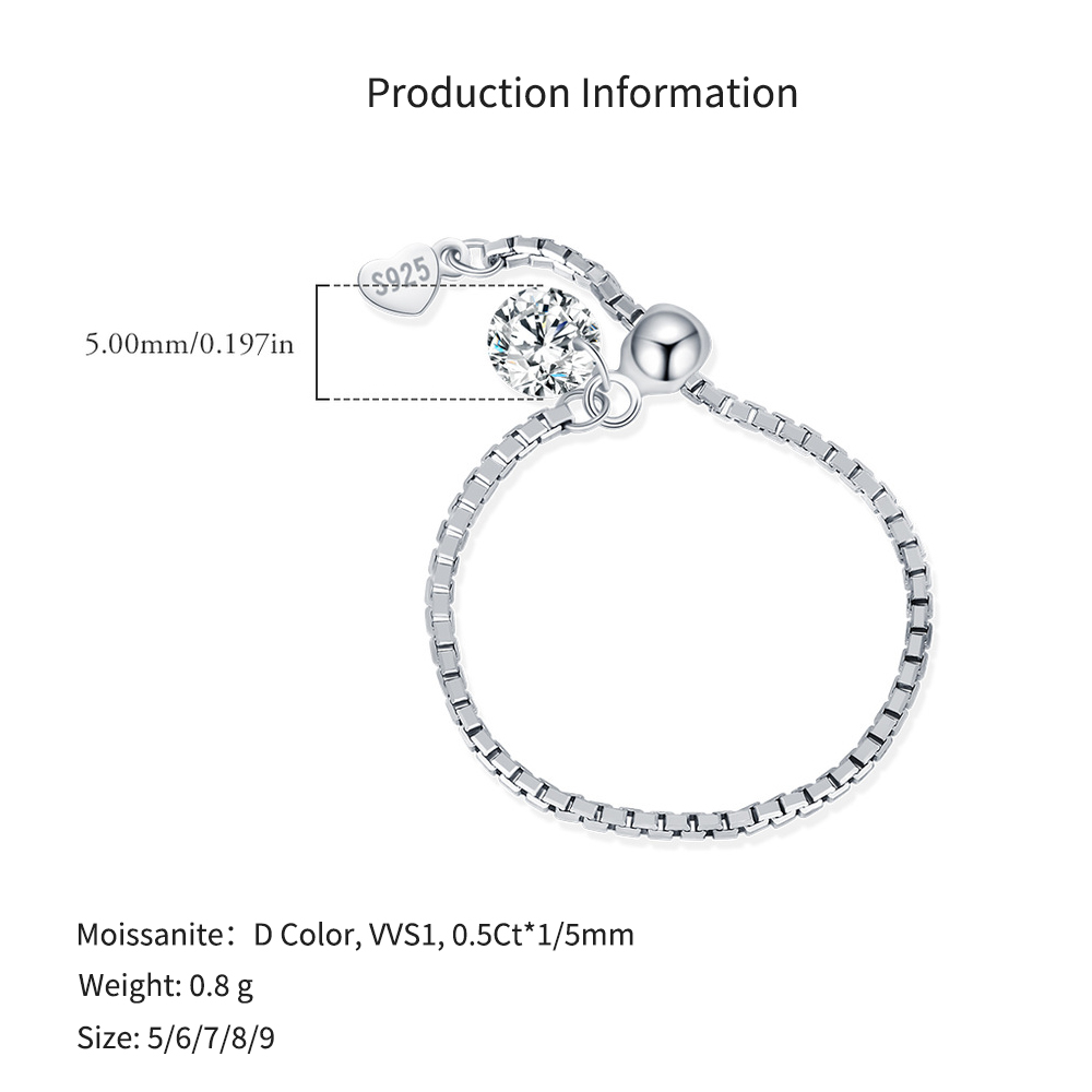 925 Sterling Silver 0.5ct Moissanite Adjustable Soft Chain Ring 110200046