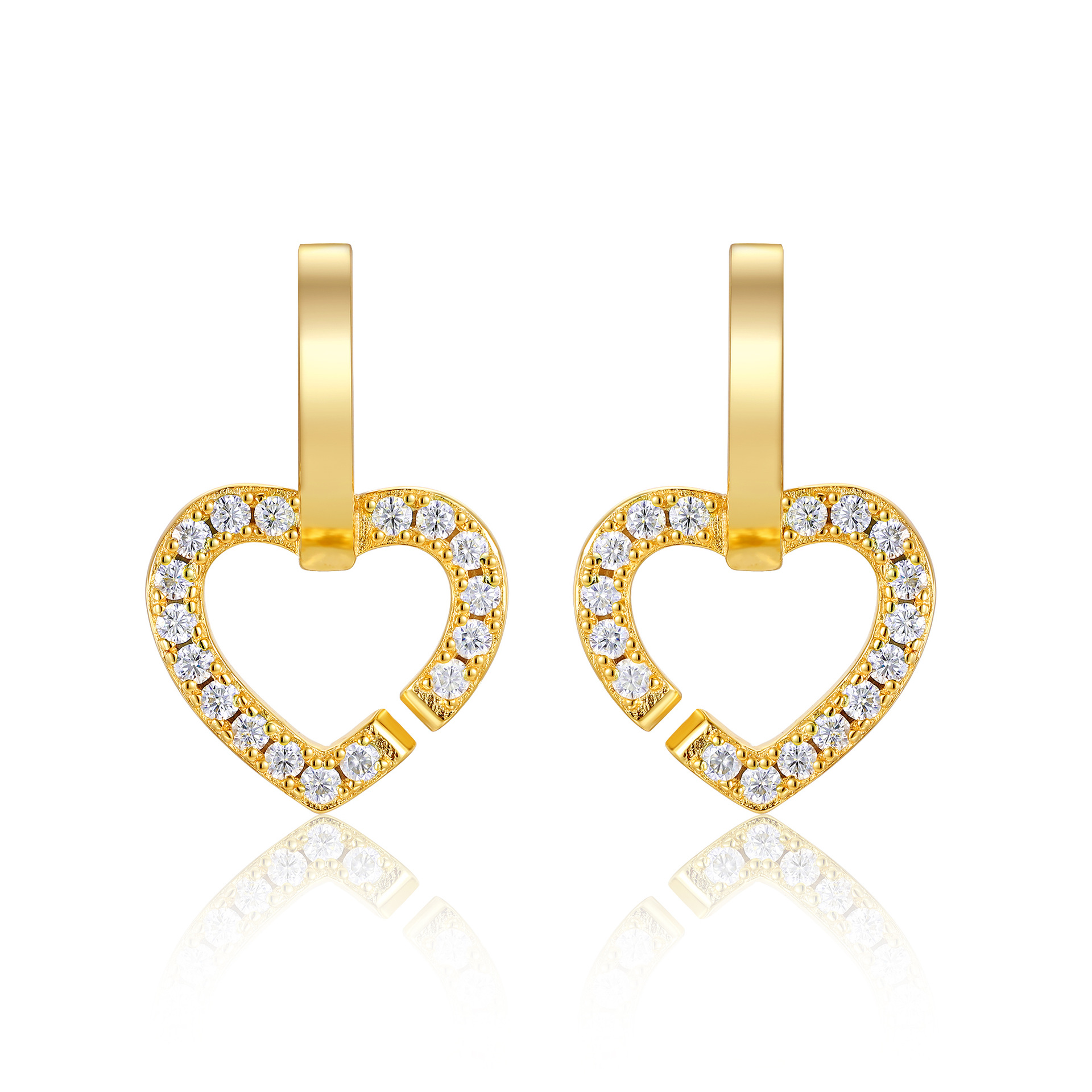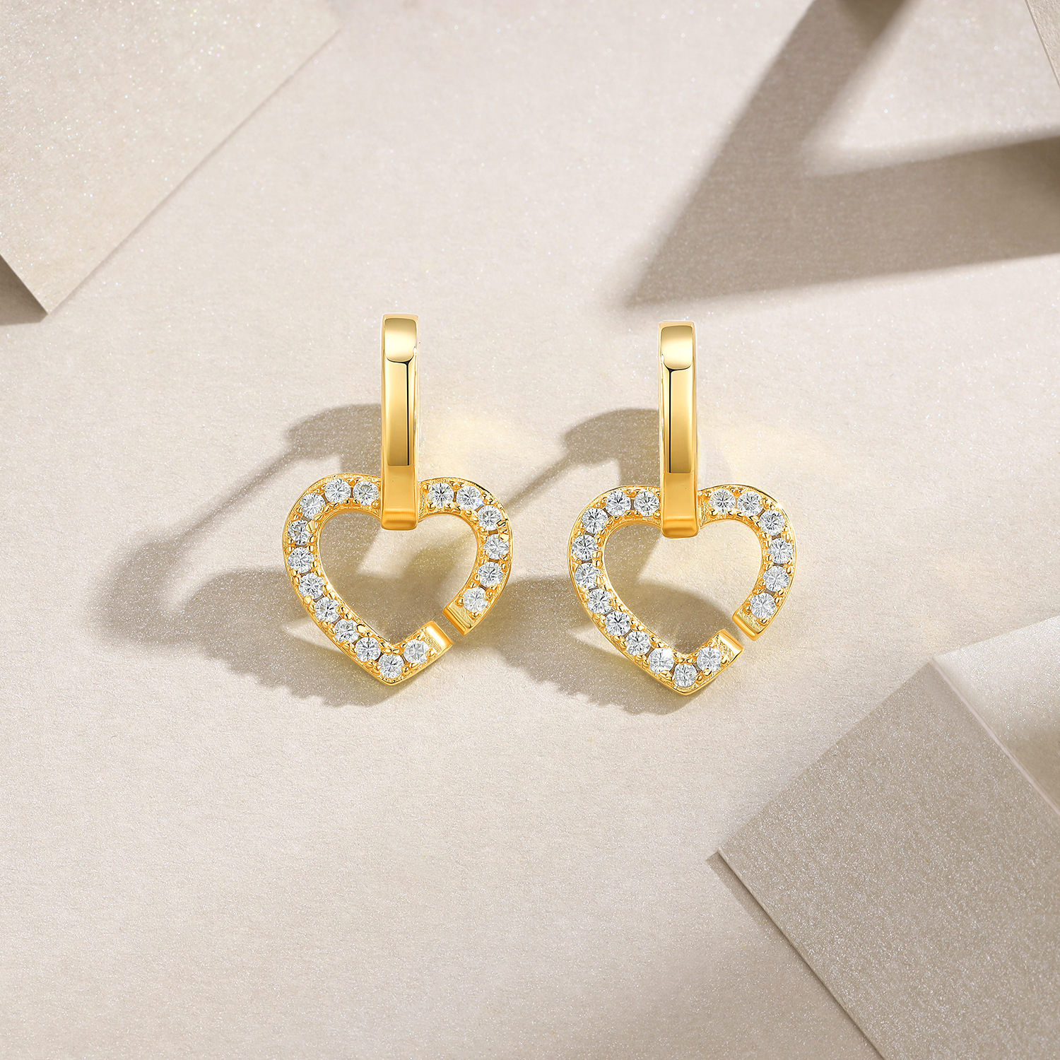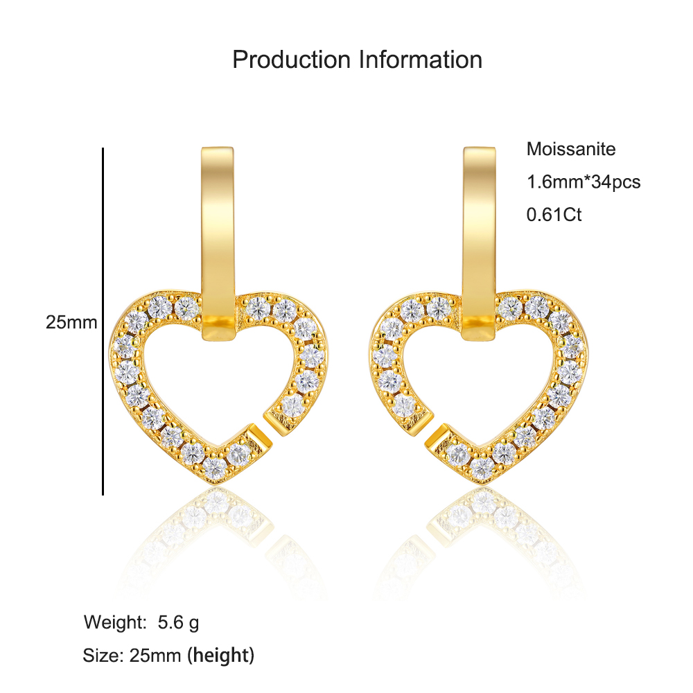 These 925 sterling silver earrings feature a dazzling open-heart design, paved with premium moissanite stones and plated in luxurious 18K gold. Perfect for daily wear or special occasions, they symbolize love, elegance, and timeless romance.
