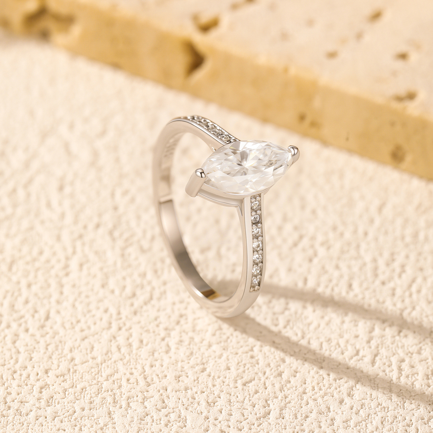 Expand your bridal and fine jewelry assortment with our Wholesale 925 Sterling Silver Marquise Moissanite Bridal Ring. "Fancy Cut" stones like the Marquise are trending for their unique silhouette and high perceived value. This SKU features a premium 1-carat equivalent Moissanite, offering the fire and durability of a diamond at a fraction of the cost. The classic pave-set shank adds a layer of luxury, making this a high-turnover item for engagement and anniversary collections.