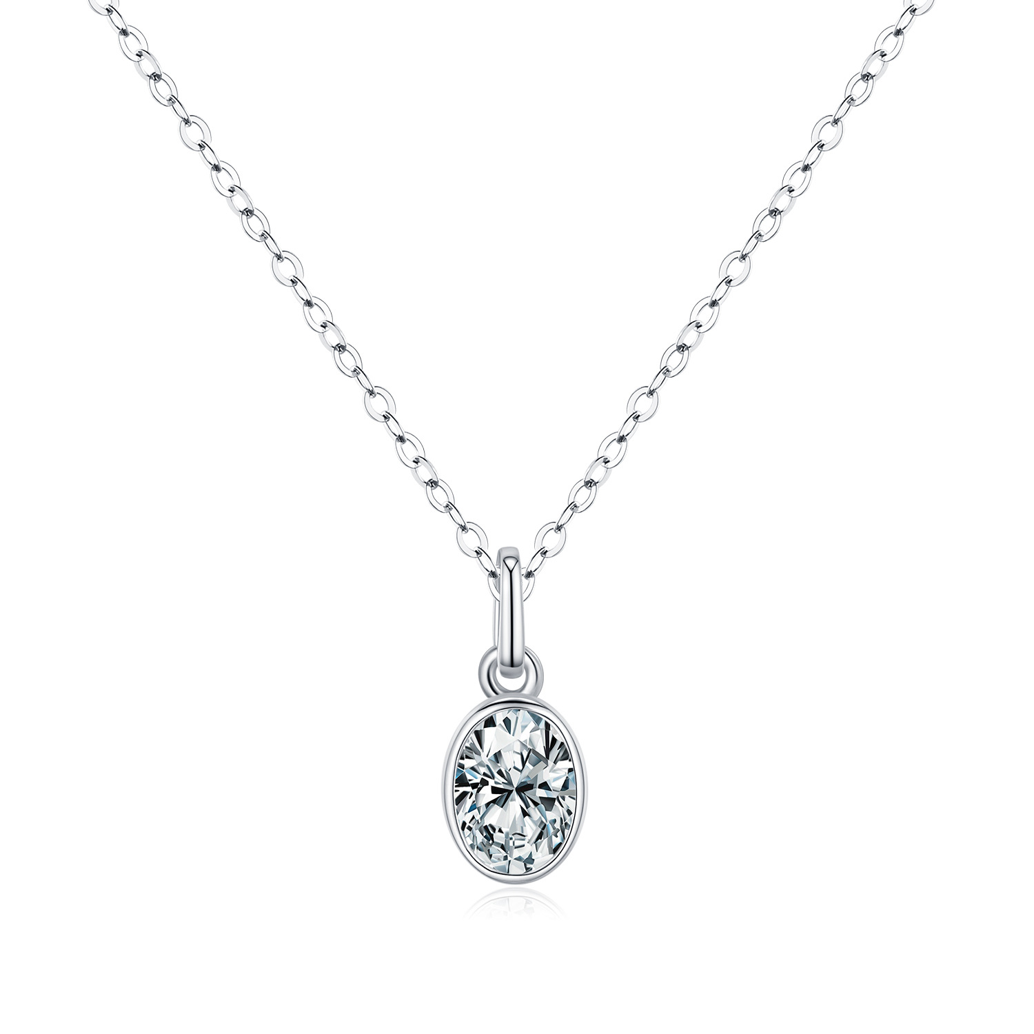 925 Sterling Silver 1Ct Oval Bezel Pendant Necklace 110300019