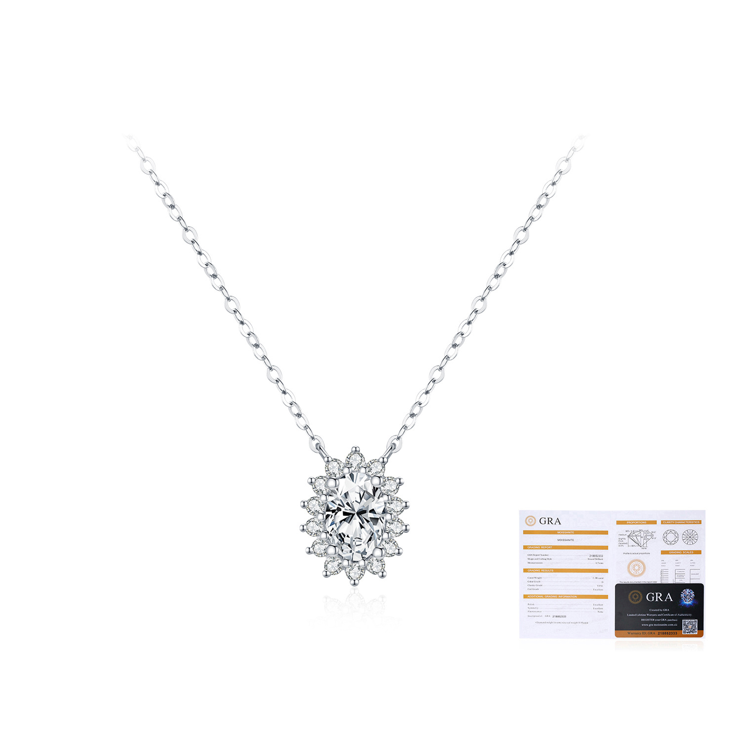 925 Sterling Silver 1ct Oval Halo Moissanite Pendant Necklace 110300023