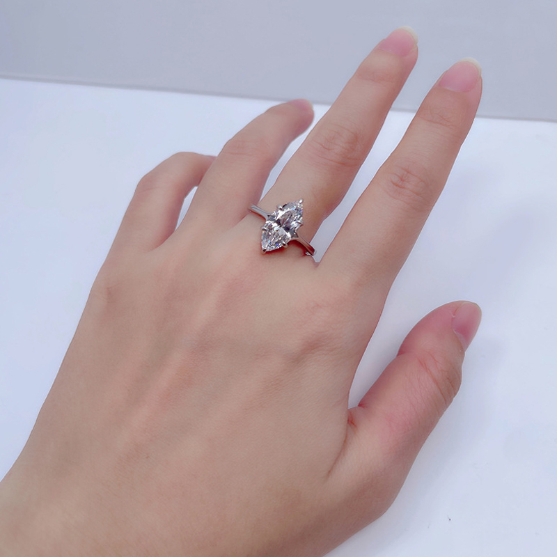 Capture the bridal and high-end fashion market with our Wholesale 925 Sterling Silver 3ct Marquise Moissanite Engagement Ring. Large carat stones are trending, and this 7x14mm Marquise cut offers maximum surface area and sparkle. Moissanite is currently a top-performing category for retailers, providing the luxury look of a 3 Carat diamond with excellent profit margins. Crafted from solid S925 sterling silver, this solitaire ring is a staple inventory item for engagement or anniversary collections, appealing to customers seeking affordable luxury.