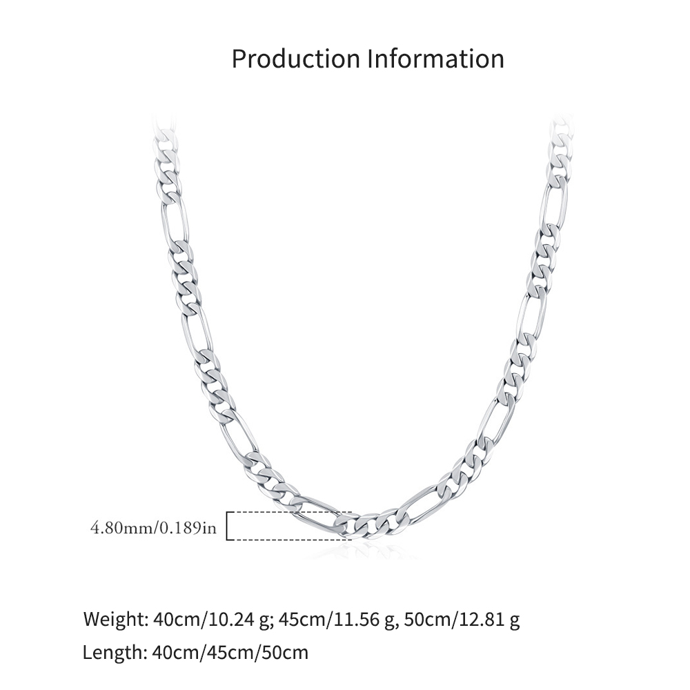 925 Sterling Silver 4.8mm Figaro Link Chain Necklace 80100096