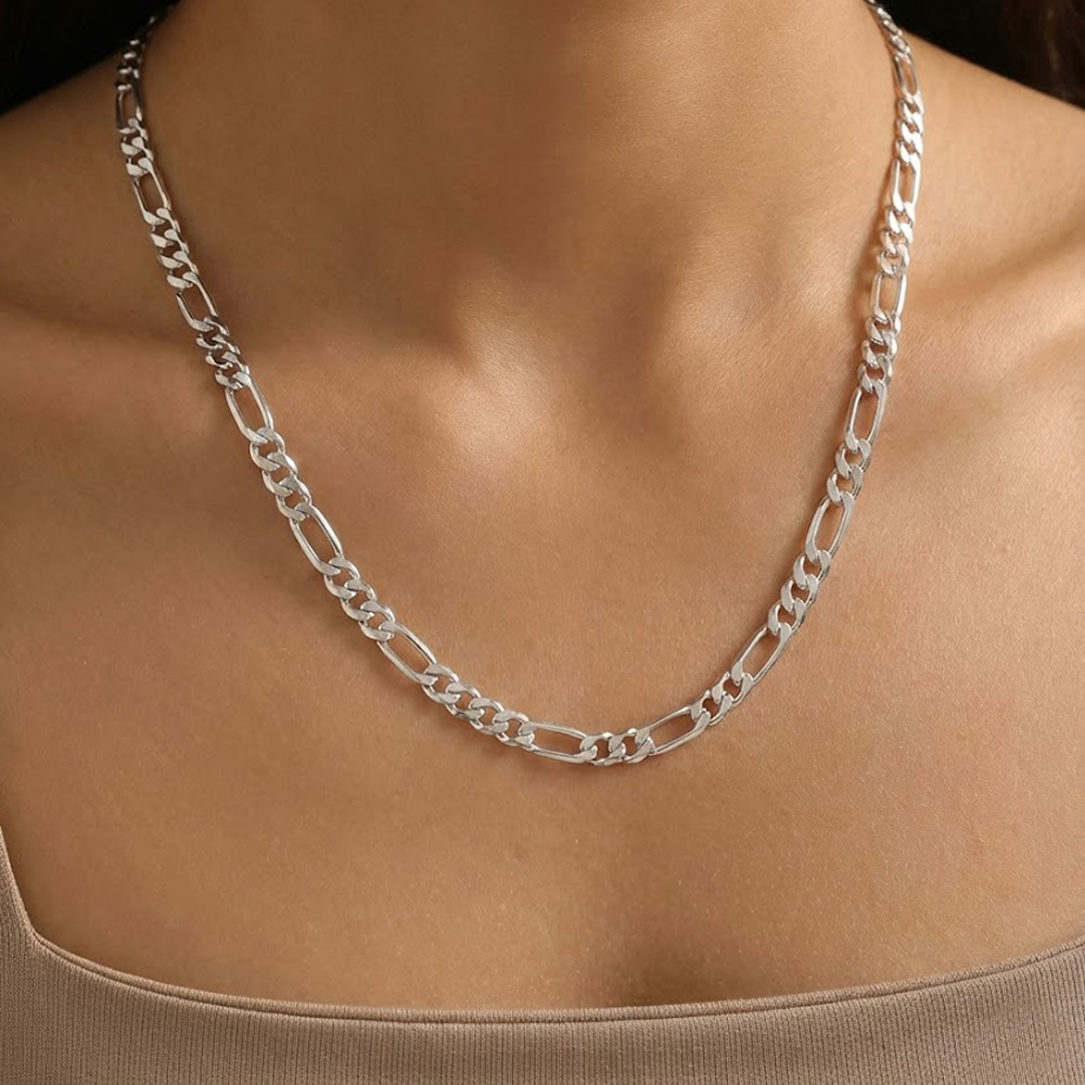 Stock the "Universal Staple" that appeals to all demographics with our Wholesale 925 Sterling Silver Figaro Link Chain. The "Figaro" link is a perennial best-seller in both men's and women's jewelry categories due to its durable structure and decorative pattern. This SKU bridges the gap between "Hip Hop" trends and "Everyday Classics," making it a low-risk, high-turnover item. Manufactured from solid S925 sterling silver, it is an essential foundation piece for any jewelry retailer.