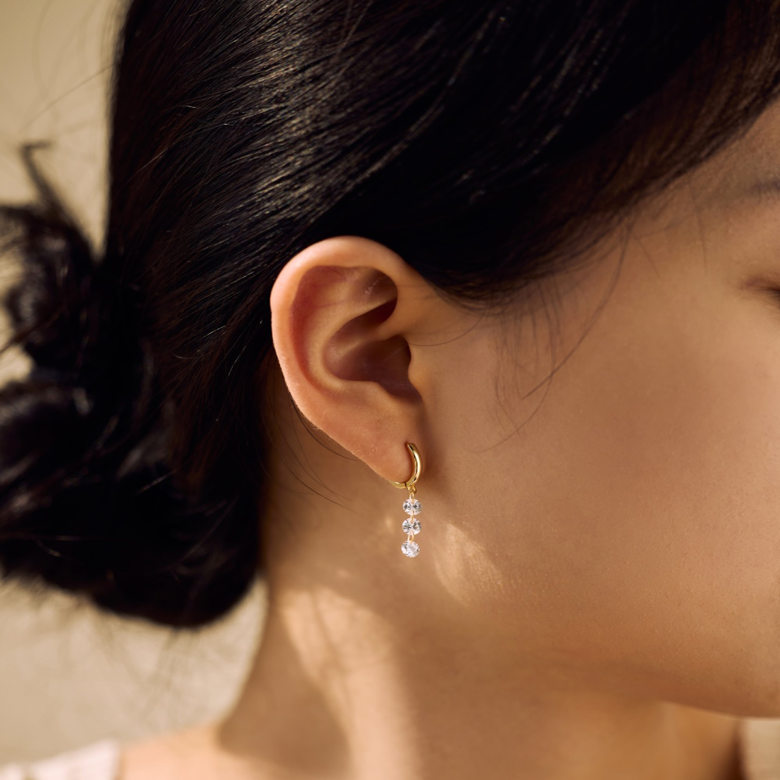These 925 sterling silver hoop earrings feature a sleek gold-plated design with three cascading 4mm white zircon drops. Lightweight and sparkling, they add graceful movement and brilliance, perfect for weddings, evening wear, or adding a touch of luxury to everyday outfits.