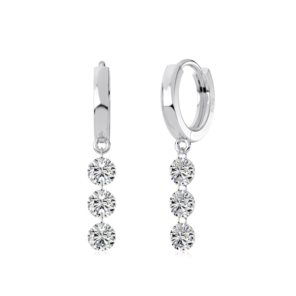 925 Sterling Silver 4mm Triple Zircon Hoop Earring 60300195
