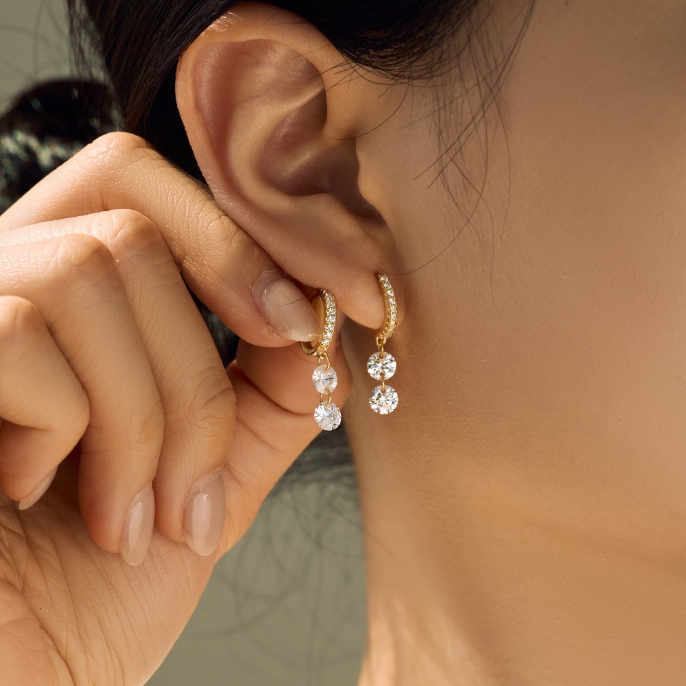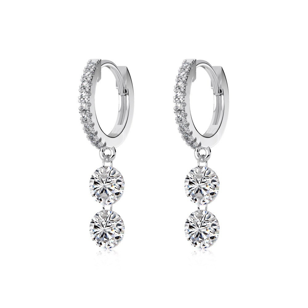 Stock your collection with these wholesale 925 sterling silver hoop earrings, designed with pavé-set hoops and two 5mm zircon drops. Stylish and eye-catching, they're a favorite for jewelry retailers, boutiques, and online shops. Available at competitive wholesale prices for bulk buyers.