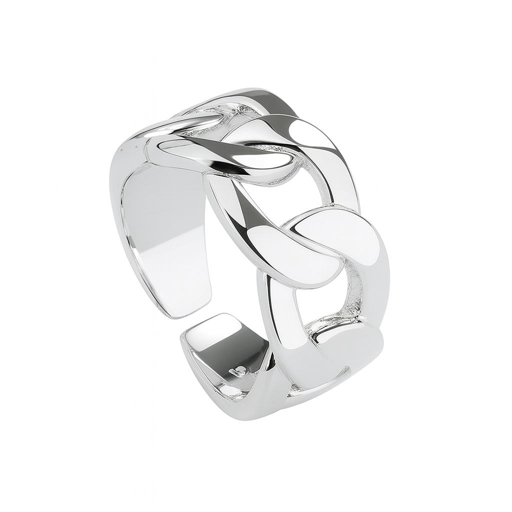 925 Sterling Silver Adjustable Chunky Sideways Chain Open Ring 70400289