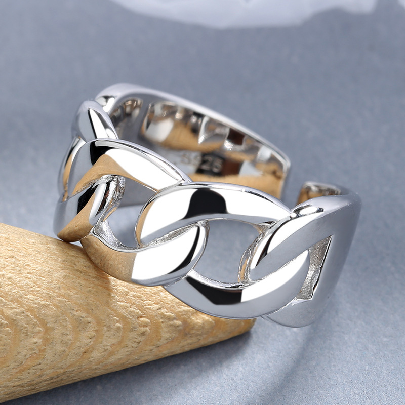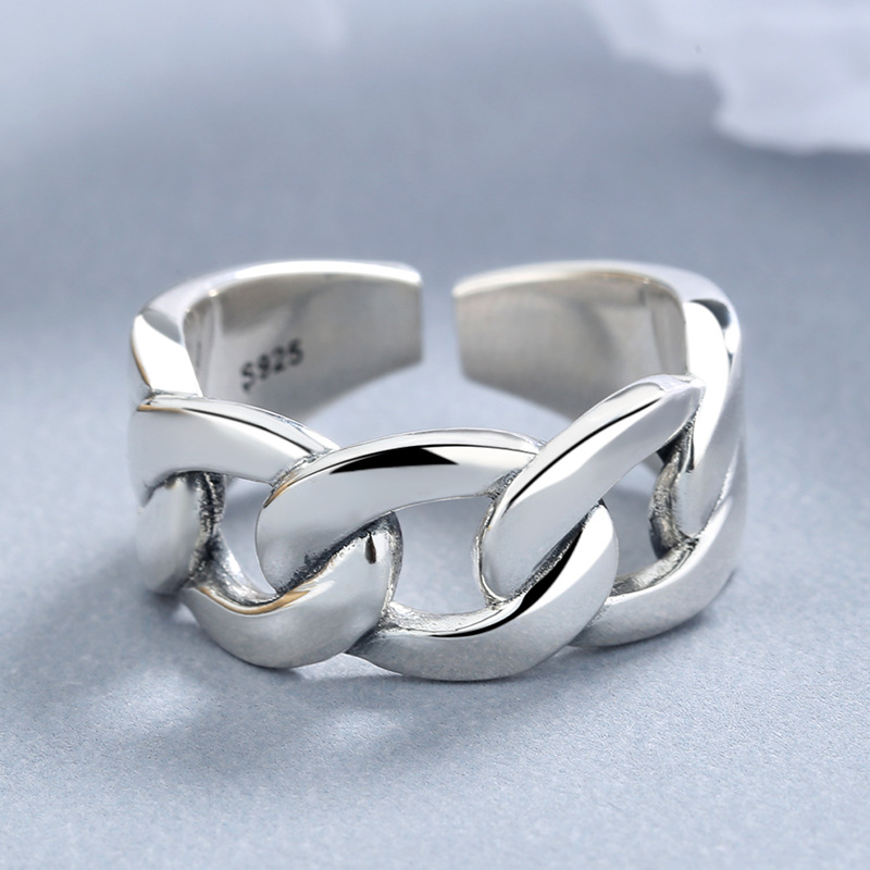 Source a trending, high-impact inventory item with our 925 Sterling Silver Adjustable Chunky Sideways Chain Open Ring. This design capitalizes on the strong, consistent demand for chunky chain jewelry, presented here in a unique, sideways ring orientation. The wide, polished surface and chain links offer strong perceived value and a current aesthetic. Crafted from authentic S925 sterling silver, this piece offers reliable quality and market appeal. The adjustable open design is critical for minimizing inventory sizing needs and broadening customer reach. This is an excellent, fashion-forward item for bulk purchase. Available for competitive wholesale pricing.