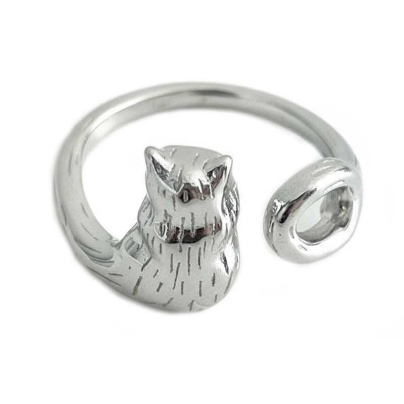925 Sterling Silver Adjustable Hugging Cat Open Ring 70400264