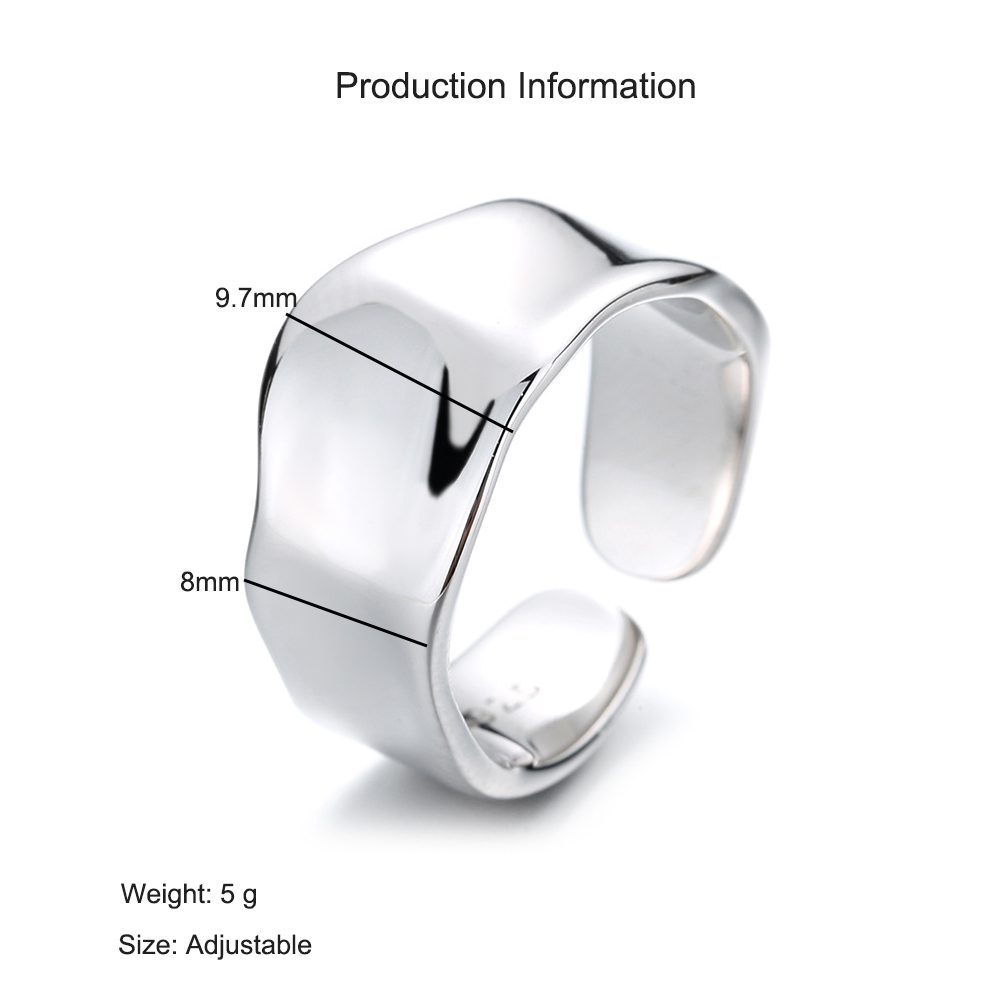 Source a high-demand, on-trend inventory item with our 925 Sterling Silver Adjustable Minimalist Wide Band Open Ring. This design perfectly captures the popular "liquid metal" or bold minimalist aesthetic, ensuring strong market appeal in the contemporary jewelry segment. The wide, polished surface offers strong perceived value and a luxurious feel. Crafted from authentic 925 sterling silver, this piece offers reliable quality. The adjustable open design is a critical feature, simplifying inventory sizing needs and maximizing customer reach. This is a reliable, fast-selling staple item for bulk purchase. Available for competitive wholesale pricing.