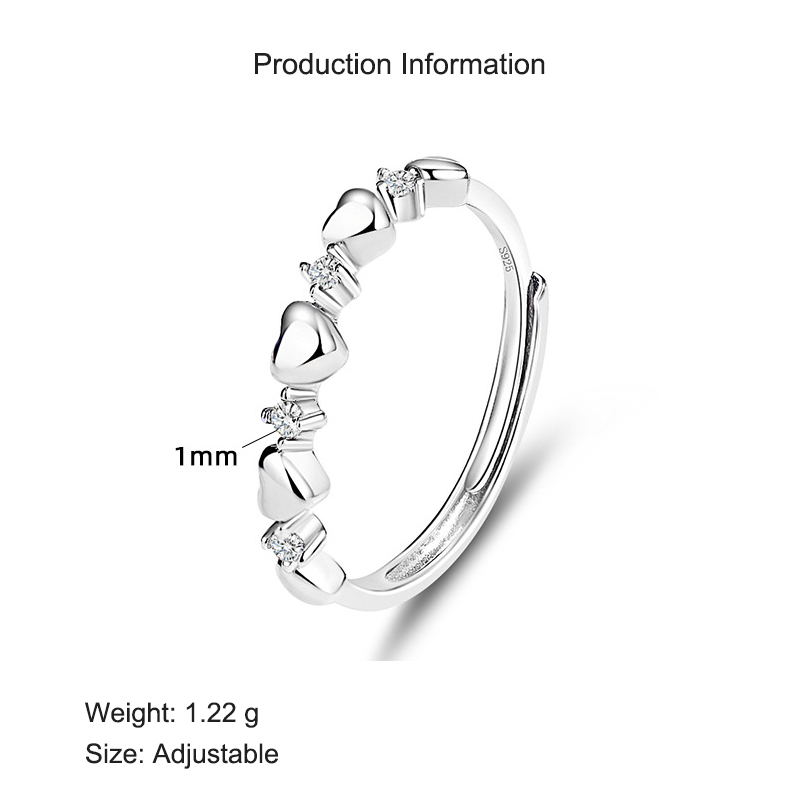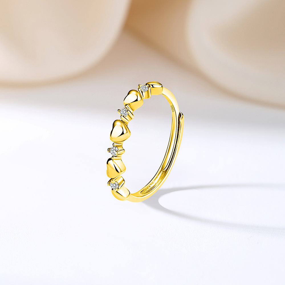 Crafted from genuine 925 sterling silver with a radiant gold plating, this delicate ring features a series of polished heart shapes paired with shimmering cubic zirconia accents. The open design ensures easy adjustability for a custom fit, making it perfect for daily wear or stacking with other minimalist rings. Its sweet and romantic style adds a playful yet elegant touch to any outfit. A lovely gift for birthdays, anniversaries, or just because.
