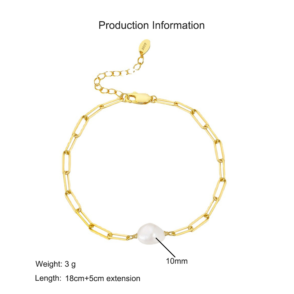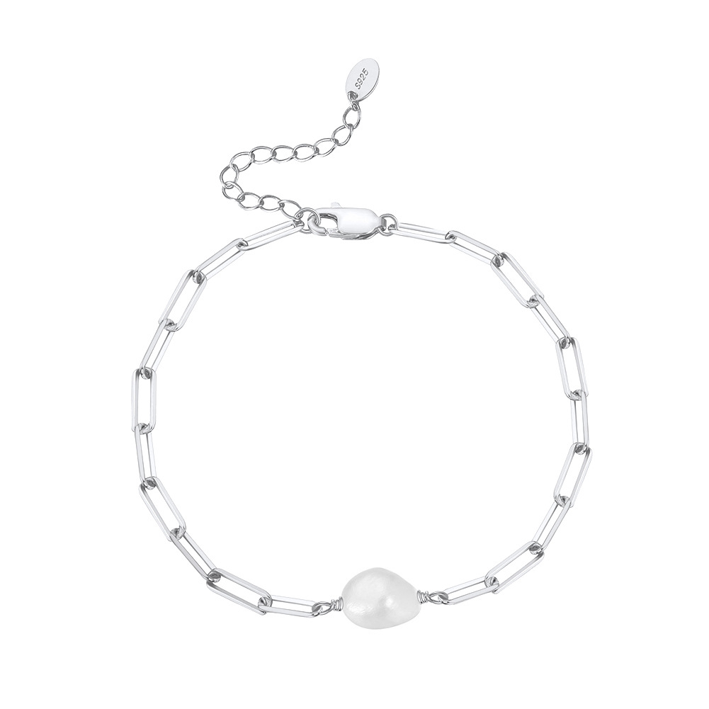 925 Sterling Silver Adjustable Pearl Paperclip Bracelet 100500020