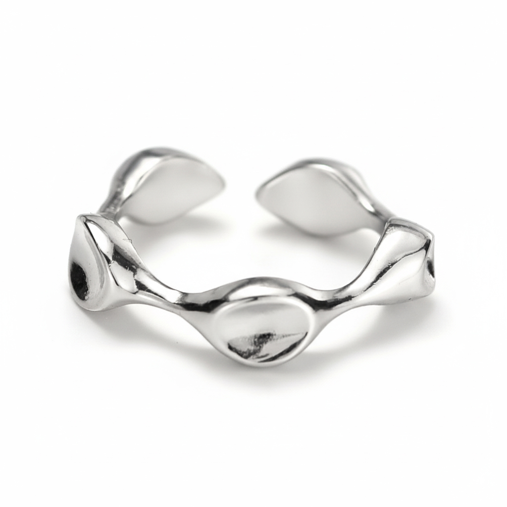 Source a trending, high-impact item with our 925 Sterling Silver Adjustable Sculptural Wavy Open Ring. This design features a highly marketable wavy/undulating texture and a bold, geometric open silhouette, aligning with current sculptural jewelry trends. Crafted from authentic S925 sterling silver, this piece offers high perceived quality and substantial aesthetic appeal. The adjustable open design is a critical feature, simplifying inventory sizing needs and broadening market appeal. This is an excellent, fashion-forward item for bulk purchase. Available for competitive wholesale pricing.