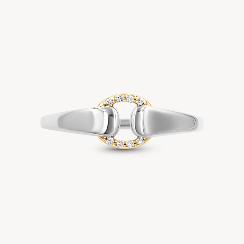 Source a high-demand, mixed-metal inventory item with our 925 Sterling Silver Two-Tone Interlocking Pave CZ Ring. This design is highly marketable due to its combination of the popular two-tone aesthetic and the classic appeal of pave cubic zirconia. The interlocking design creates a high-perceived-value, unified piece. Crafted from authentic S925 sterling silver, this piece offers reliable quality and strong retail appeal because it complements both gold and silver jewelry collections. Available for bulk purchase at competitive wholesale prices.