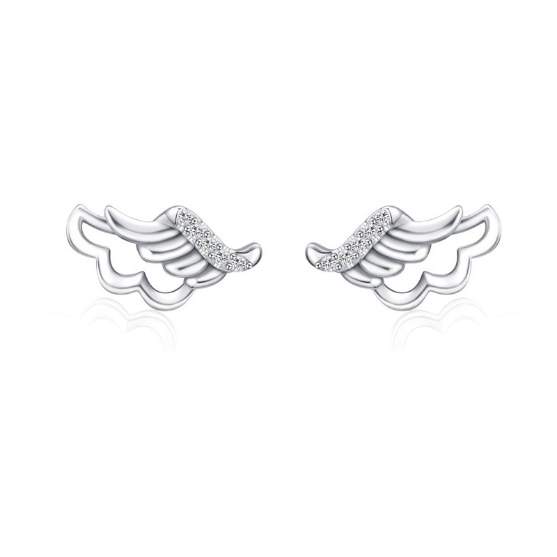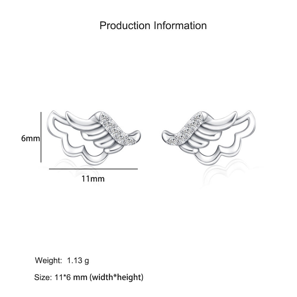 925 Sterling Silver Angel Wing Micro-Pave Zircon Stud Earring 40200695