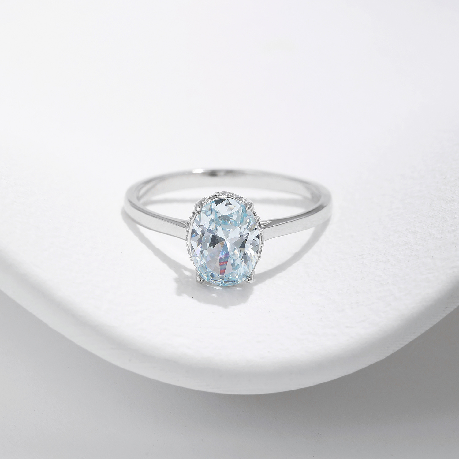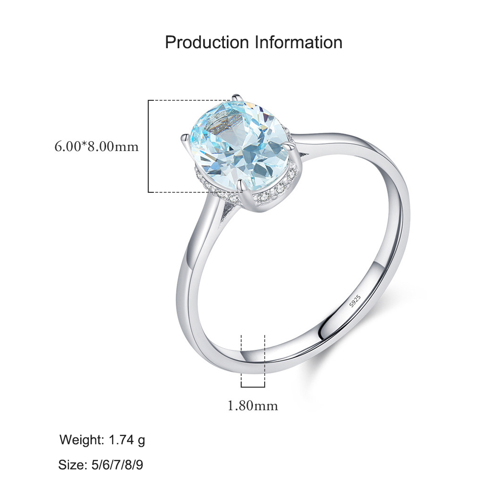 This 925 sterling silver aquamarine-inspired ring features a dazzling oval-cut light blue cubic zirconia, accented with tiny sparkling CZ stones for extra brilliance. The minimalist band highlights the gemstone’s serene ocean-like glow, making it a perfect piece for daily wear, cocktail parties, or as a promise ring. A timeless blend of elegance and sophistication, this ring is an excellent choice for engagement, anniversaries, or thoughtful gifts.