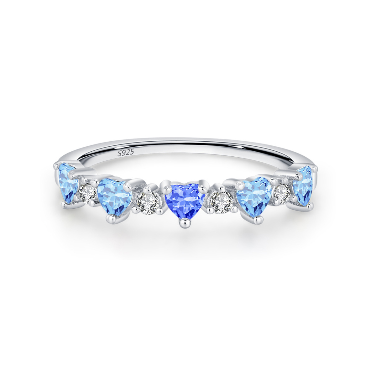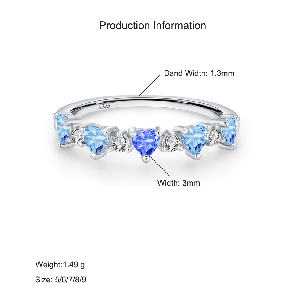 This 925 sterling silver aquamarine heart gemstone ring shines with elegance and love. Adorned with a row of sparkling heart-shaped blue zircons and brilliant white accents, it captures the freshness of ocean tones in a delicate romantic design. Crafted from genuine S925 silver, the ring is hypoallergenic, comfortable, and perfect for stacking or wearing solo. A timeless choice for daily wear, anniversaries, or as a heartfelt gift symbolizing purity and affection.