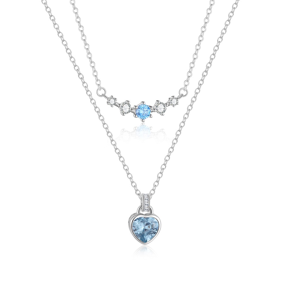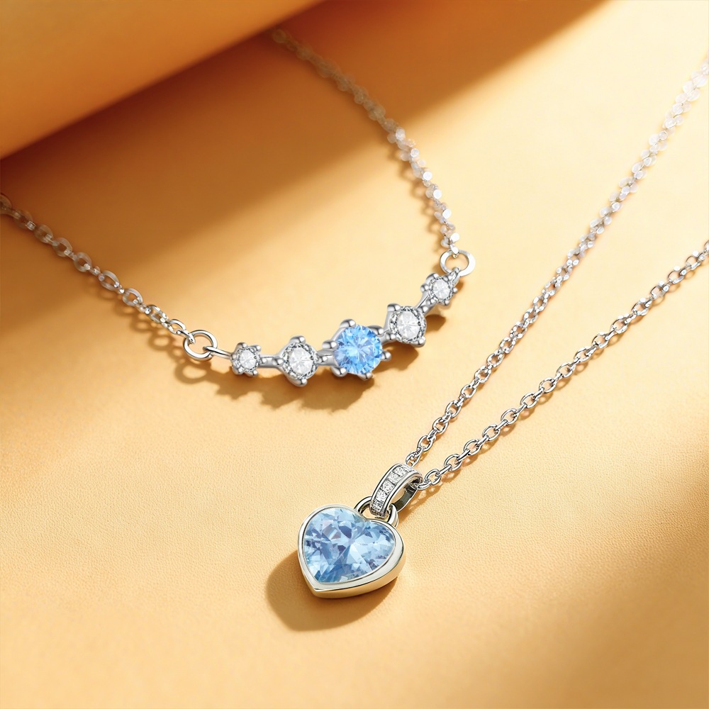 Expand your "Layered Necklaces" collection with our Wholesale 925 Sterling Silver Blue Zircon Heart & Curved Bar Necklace. This SKU combines two trending elements: the "Smile/Curved Bar" station chain and the classic "Heart Pendant". The use of "Aquamarine Blue" Zirconia offers the luxurious look of fine gemstones (like Blue Topaz or Aquamarine) at a fraction of the cost. Manufactured from solid S925 sterling silver, this ready-to-wear stack is a high-turnover item perfect for gift-giving seasons.