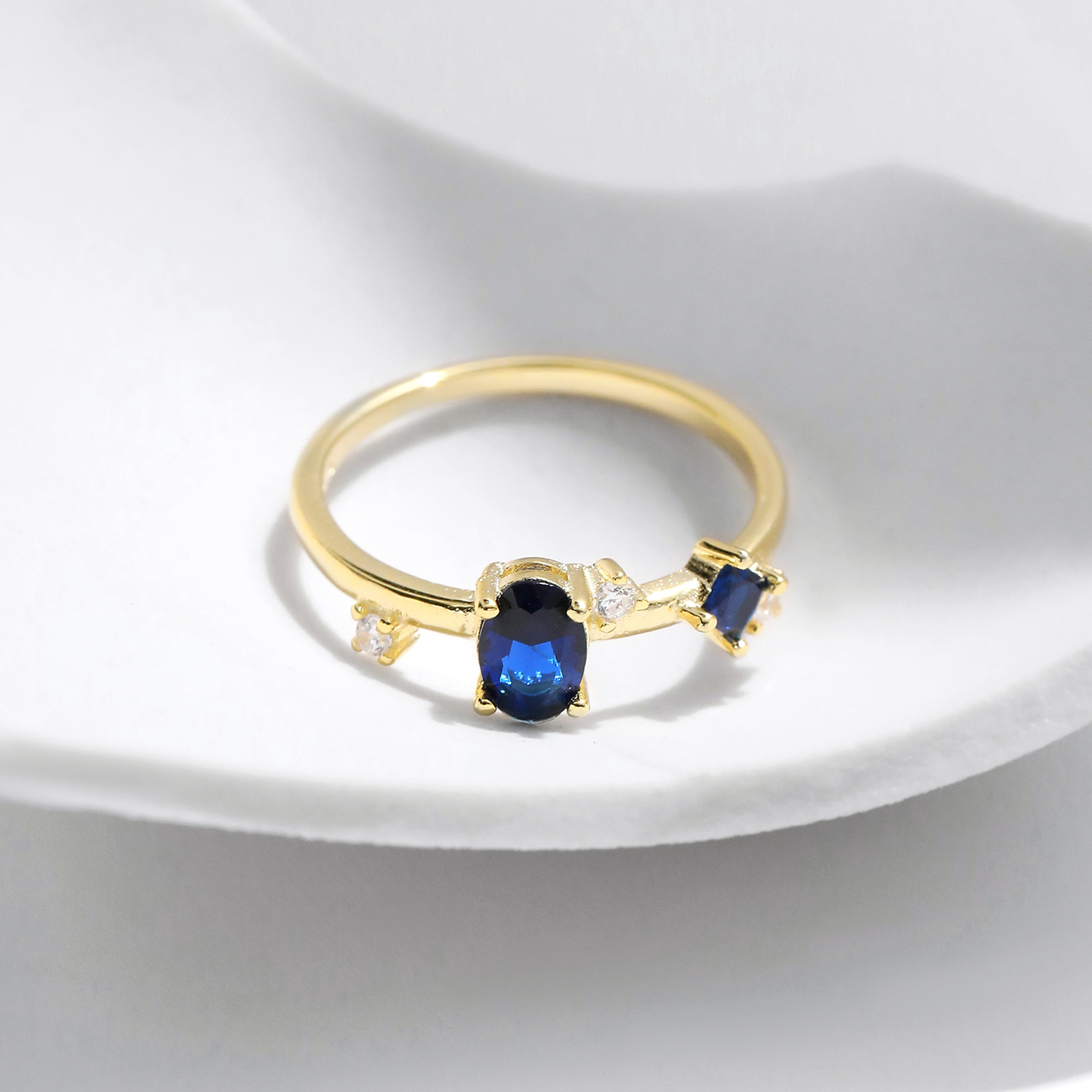 This unique 925 sterling silver ring features an asymmetrical design with an oval-cut simulated sapphire as the centerpiece, accented by sparkling cubic zirconia for a touch of brilliance. The vintage-inspired style combines elegance with modern artistry, making it a standout accessory for those who love creative and distinctive jewelry. Perfect for special occasions, evening wear, or as a thoughtful gift, this gemstone-inspired ring brings sophistication and individuality to any look.