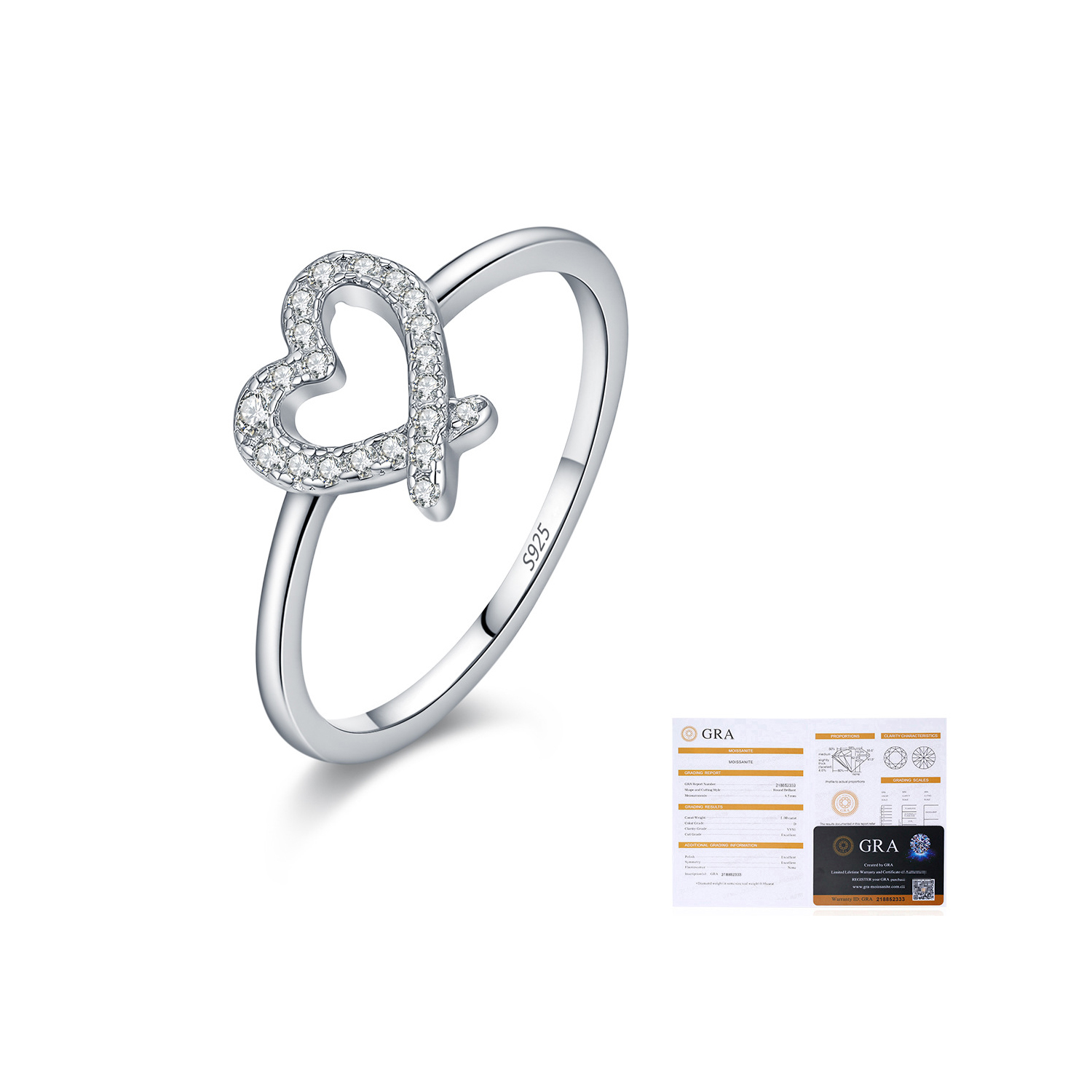 925 Sterling Silver Asymmetrical Pave Heart Moissanite Ring 110200061