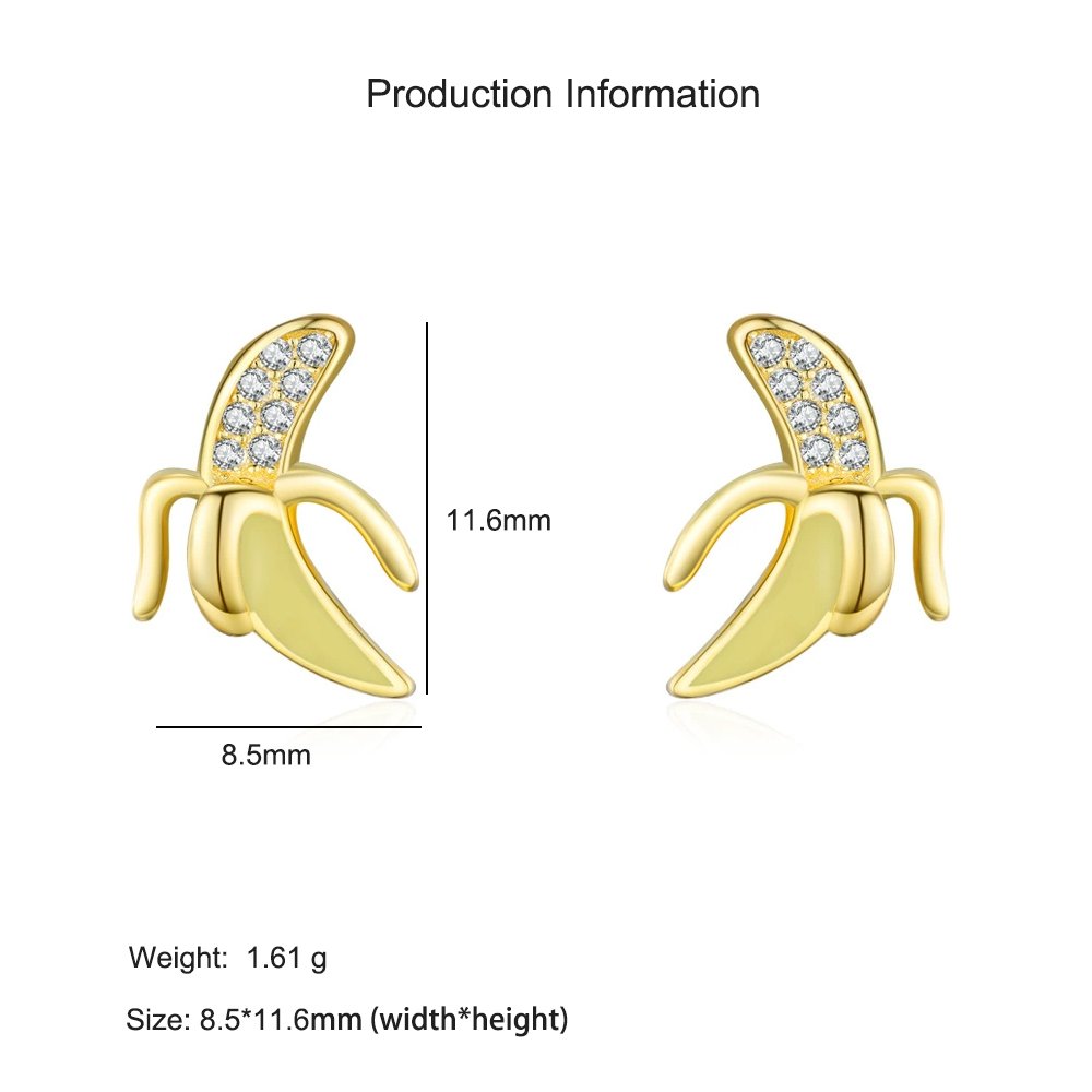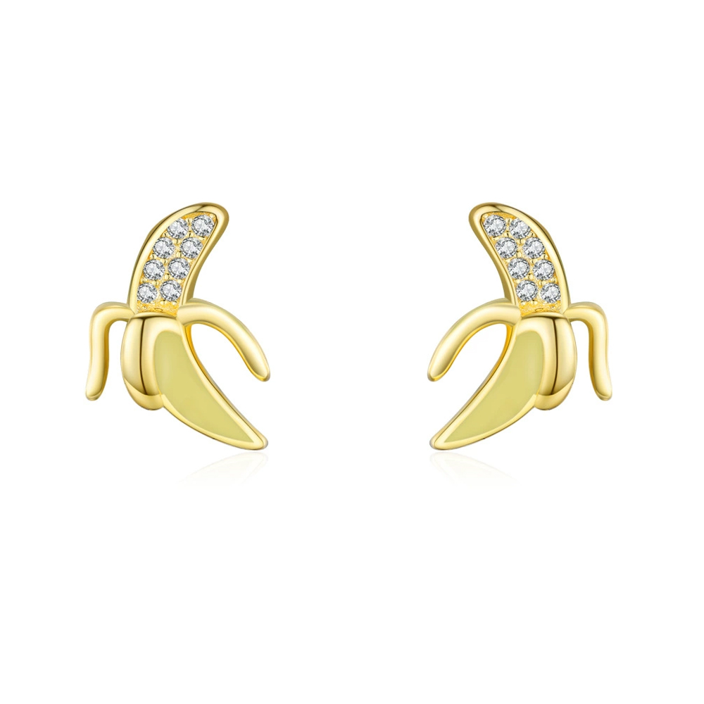 Playful yet chic, these 925 sterling silver banana earrings are the perfect mix of fun and sparkle. Crafted in a bright gold-tone finish with shimmering micro-pavé zircons, the design captures the charm of a peeled banana for a fresh and youthful vibe. Lightweight and hypoallergenic, these earrings add a joyful twist to your daily style—ideal for casual wear, summer outfits, or gifting to someone with a cheerful spirit.