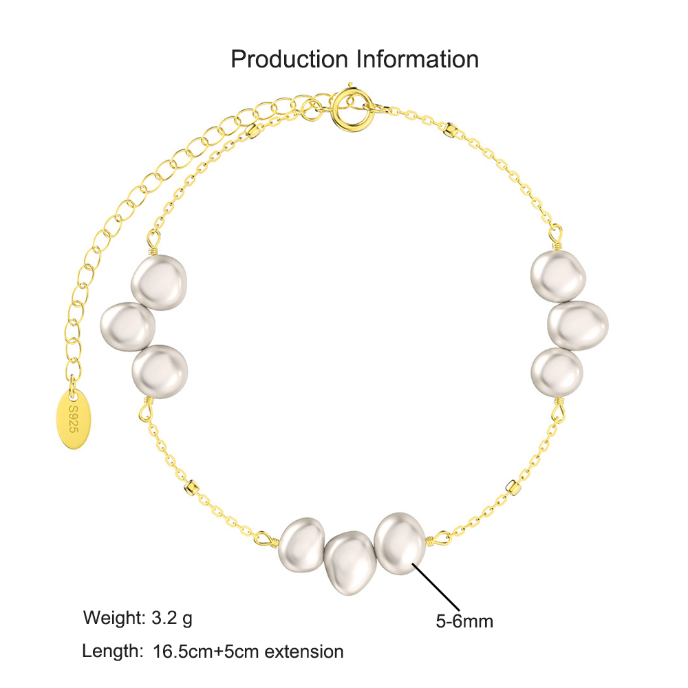 925 Sterling Silver Baroque Freshwater Pearl Bracelet 100500016
