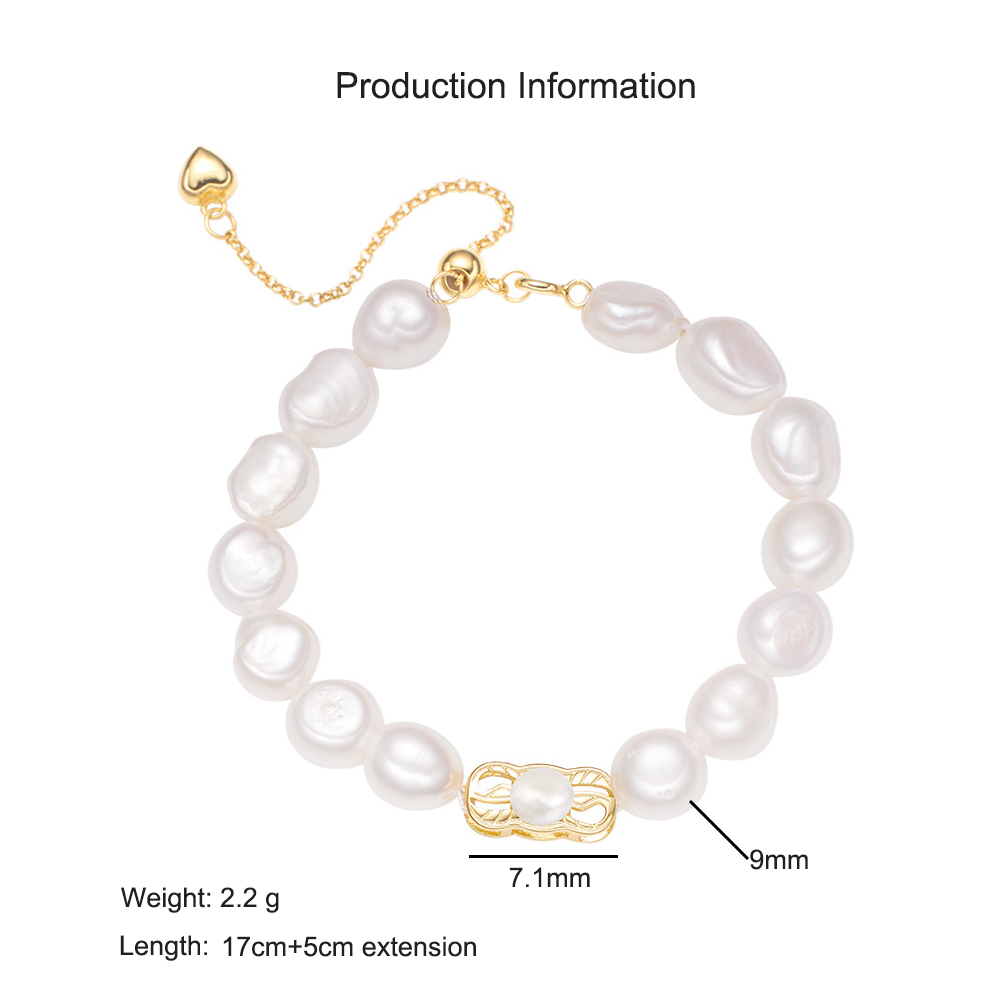 Crafted from natural irregular baroque freshwater pearls, this bracelet features a unique adjustable pull-chain design with delicate 925 sterling silver accents. The lustrous pearls and elegant gold-toned details create a timeless piece perfect for daily wear or gifting.