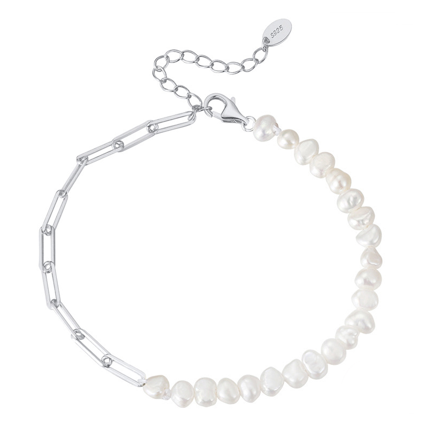925 Sterling Silver Baroque Pearl Paperclip Bracelet 100500009
