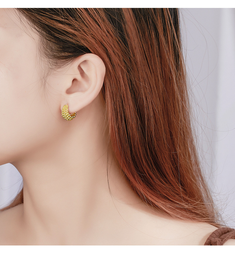 Stock up on these stylish 925 sterling silver beaded C-hoop earrings, featuring a refined French-inspired retro design. Their unique texture and timeless appeal make them ideal for jewelry retailers, boutiques, and online shops. Available in bulk with competitive wholesale pricing.
