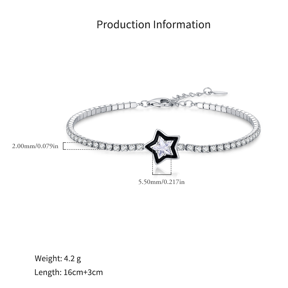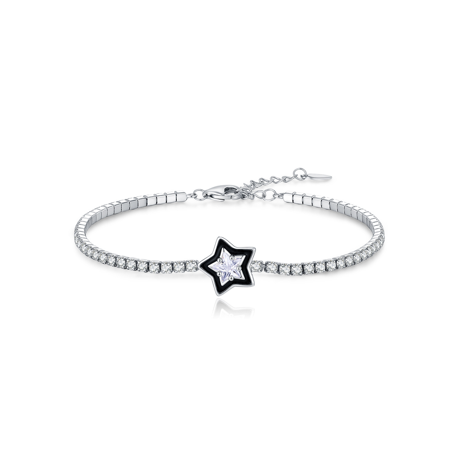 925 Sterling Silver Black Enamel Star CZ Slider Tennis Bracelet 100100234