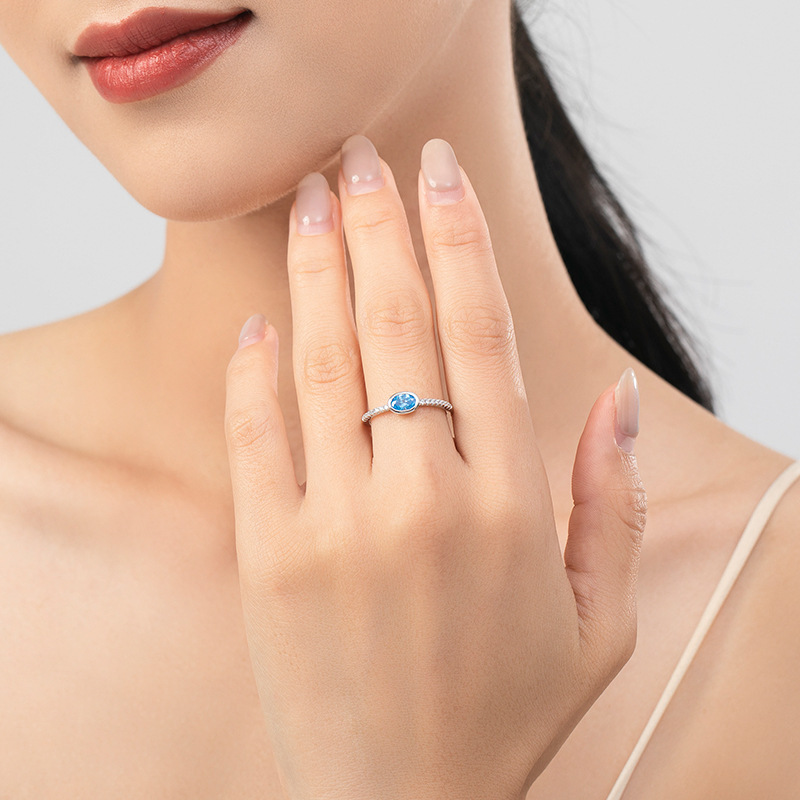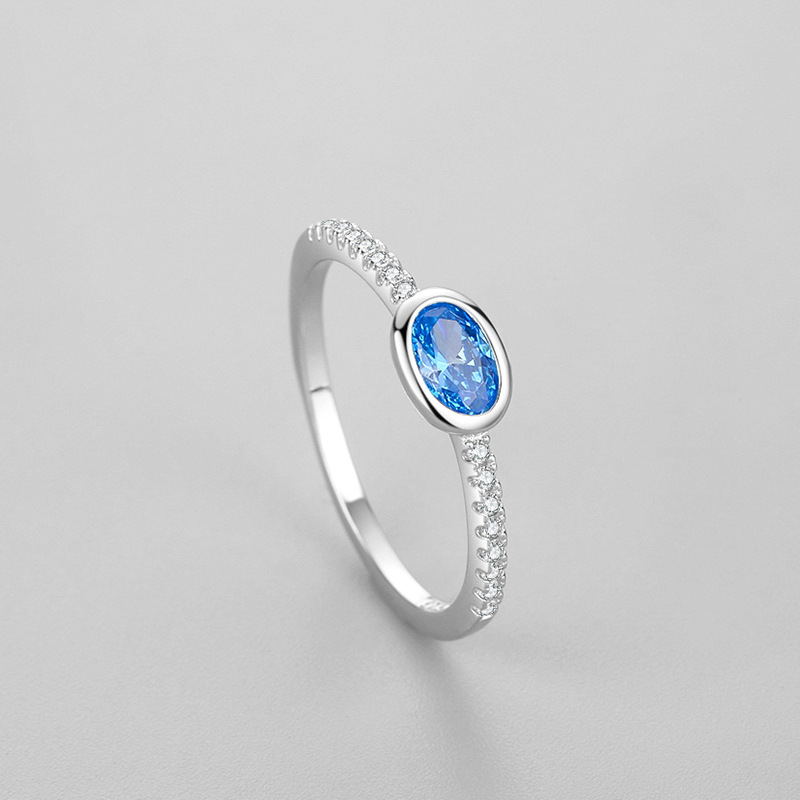 925 Sterling Silver Blue Oval Zircon Ring 70200374