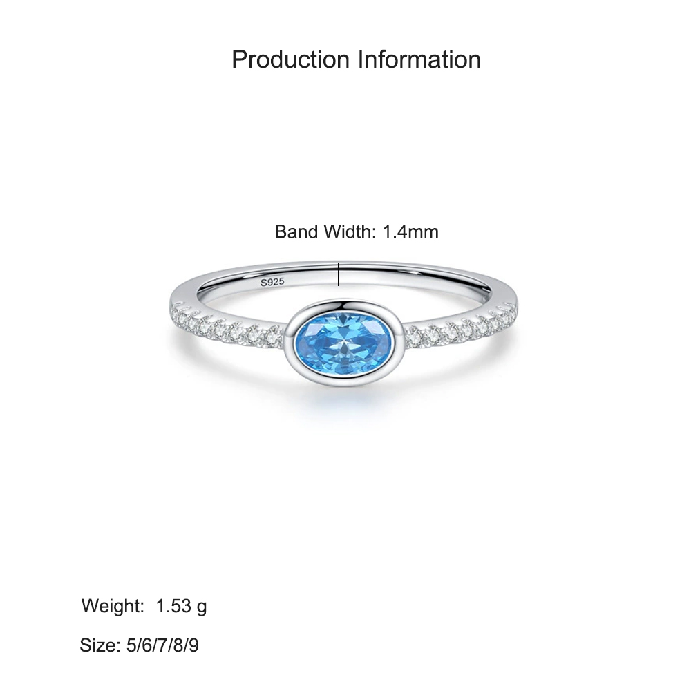 This 925 sterling silver blue zircon ring radiates timeless elegance and modern charm. The brilliant oval-cut blue zircon at the center glimmers like a tranquil ocean, complemented by a slim band adorned with sparkling white zircons. Crafted from high-quality sterling silver, this ring is hypoallergenic, durable, and polished to perfection. Perfect for daily wear, special occasions, or as a thoughtful gift for someone special who loves sophisticated, minimal design.