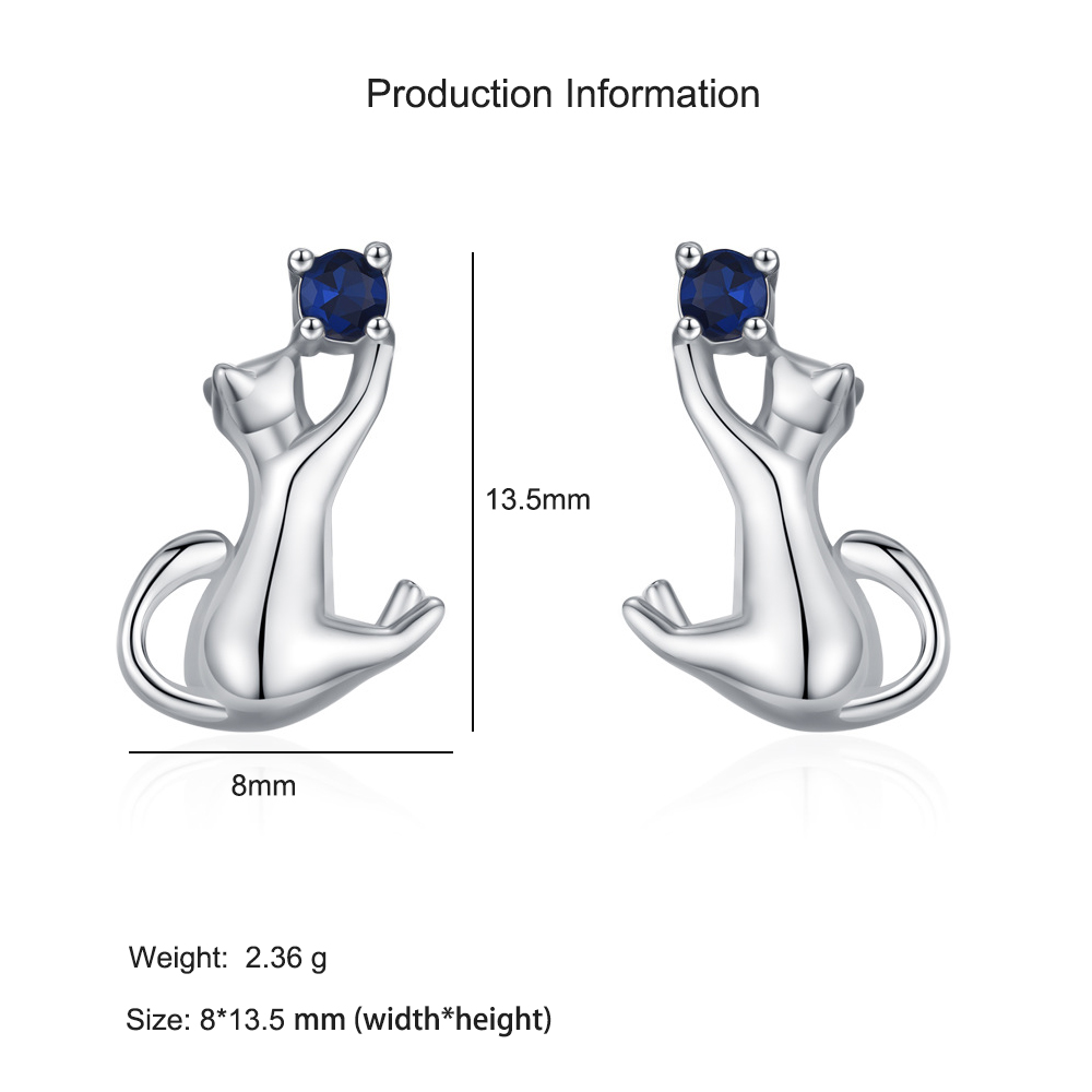925 Sterling Silver Blue Zircon Cat Stud Earring 40200650 - image1925 Sterling Silver Blue Zircon Cat Stud Earring 40200650 - image2