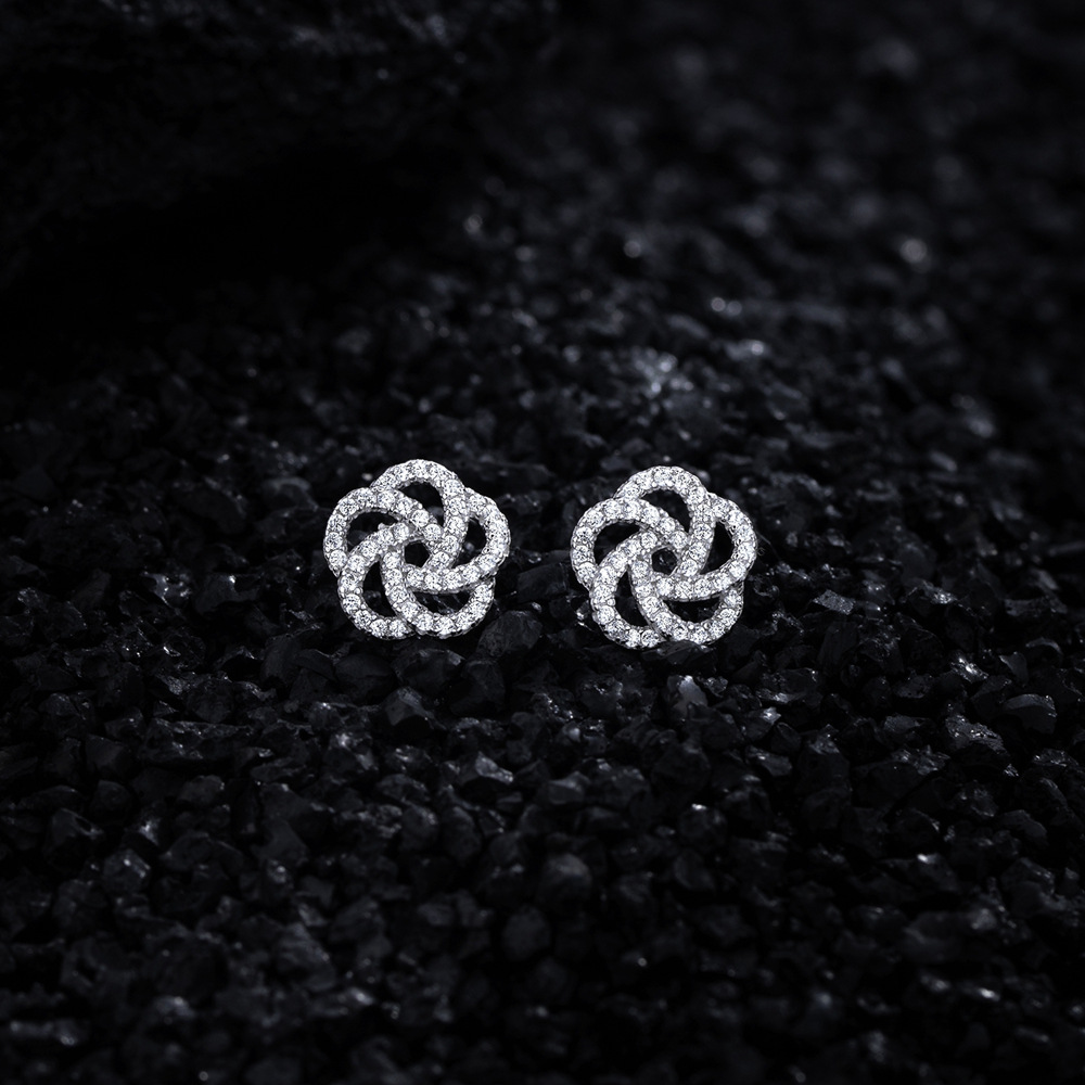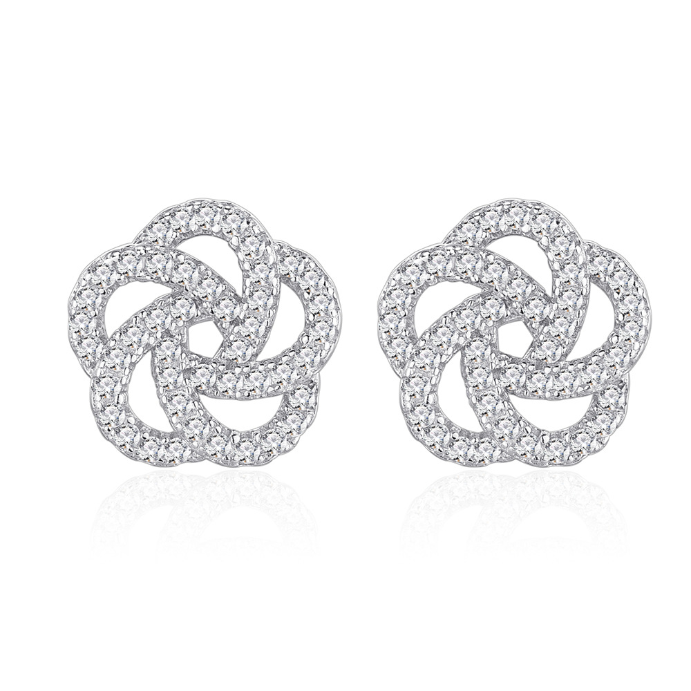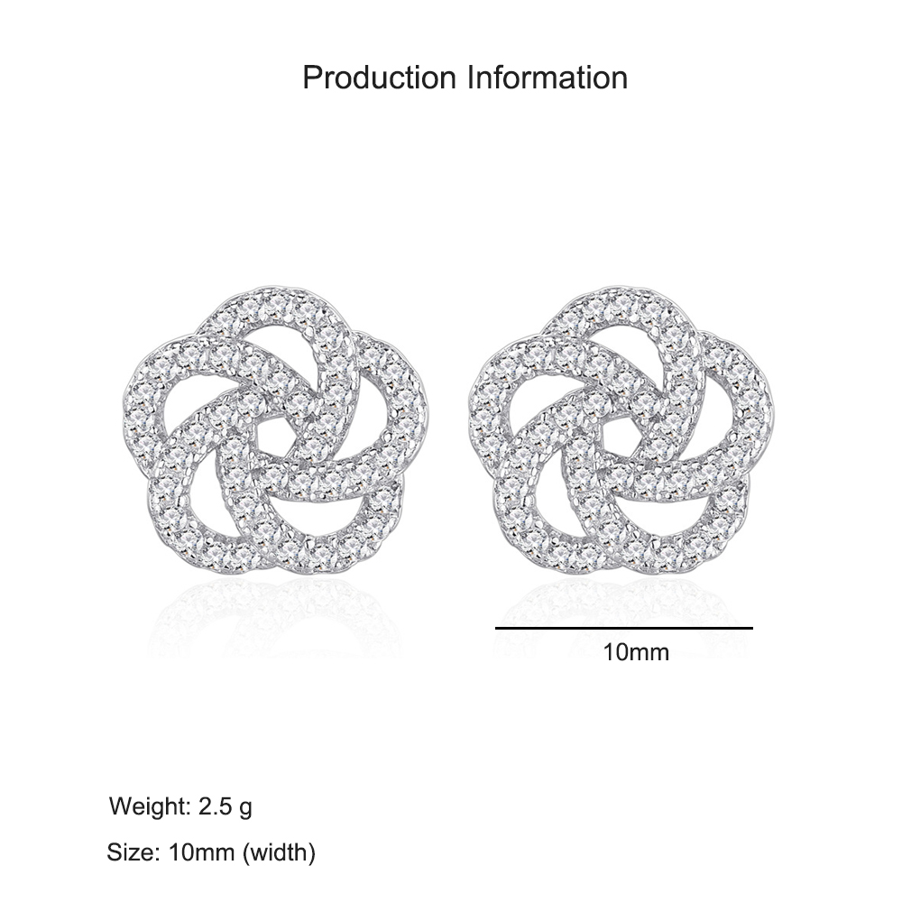 925 Sterling Silver Camellia Pave Zircon Stud Earring 40200568