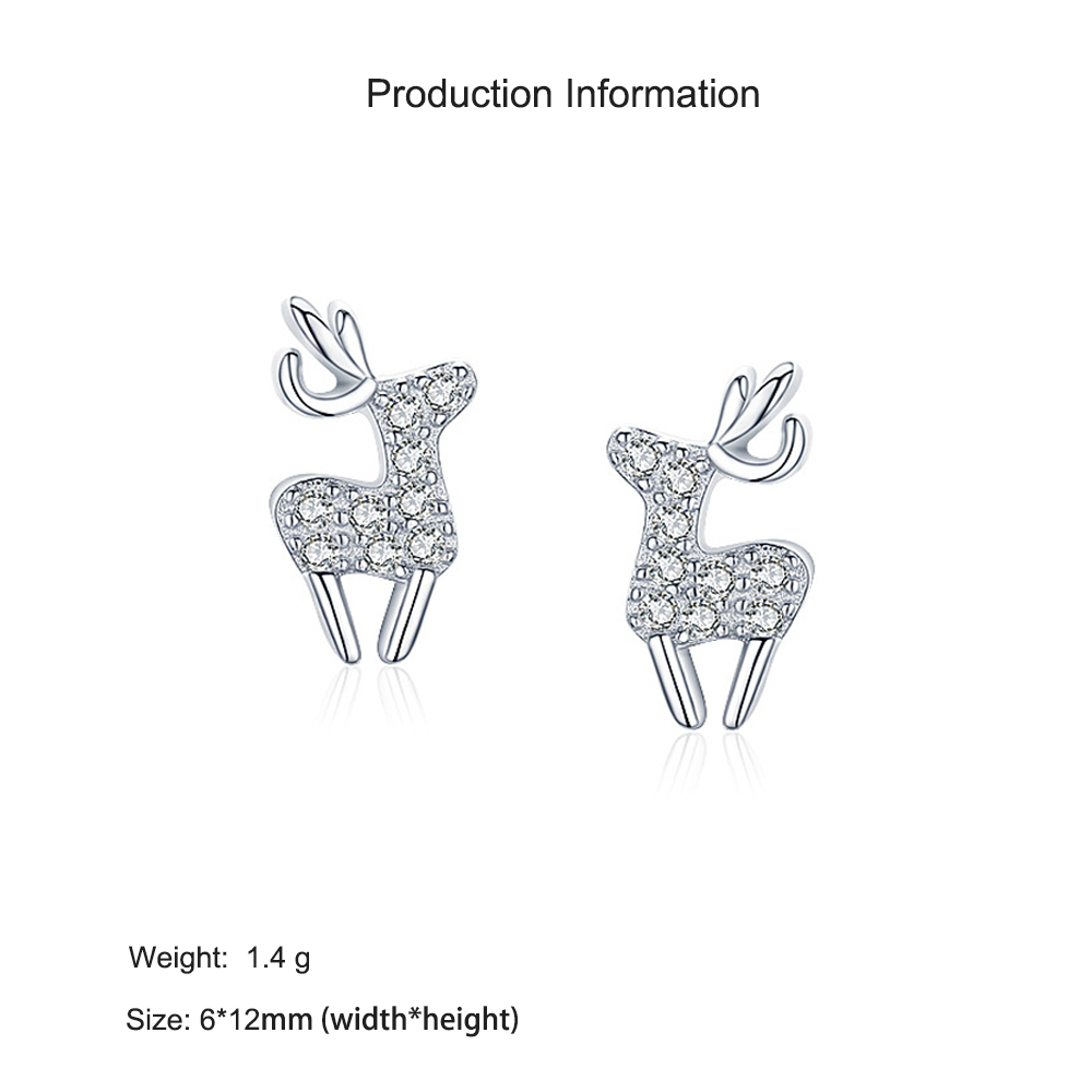 925 Sterling Silver Christmas Zircon Reindeer Stud Earring 40200649