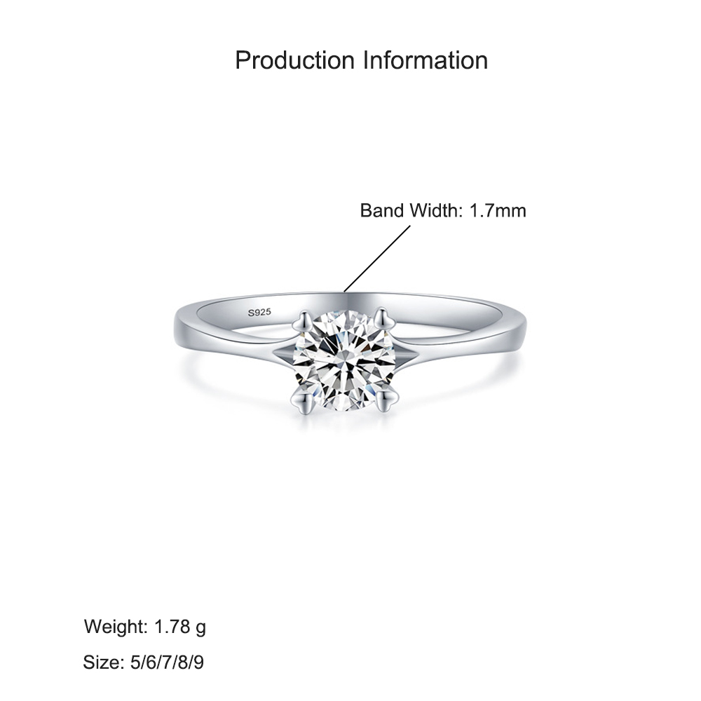 925 Sterling Silver Classic 1 CT Solitaire Band Ring 70200347