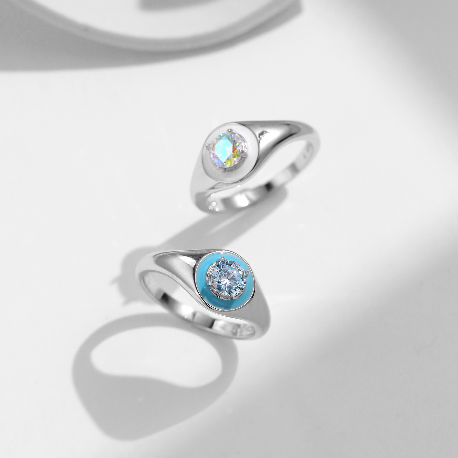 These trendy 925 sterling silver signet rings feature eye-catching colorful CZ stones set in smooth enamel accents. With a bold retro silhouette and high-polish finish, they bring a playful twist to your everyday look—perfect for stacking, gifting, or standing out in any INS-inspired outfit.