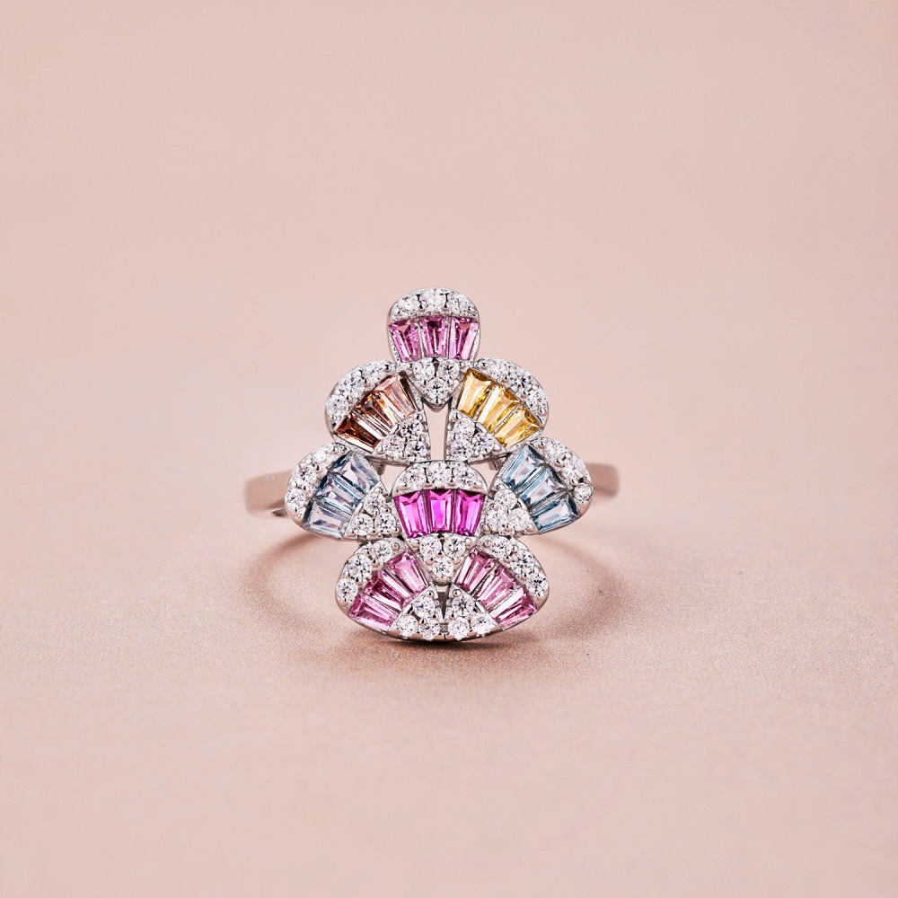 925 Sterling Silver Colorful Zirconia Flower Solitaire Ring 70200193